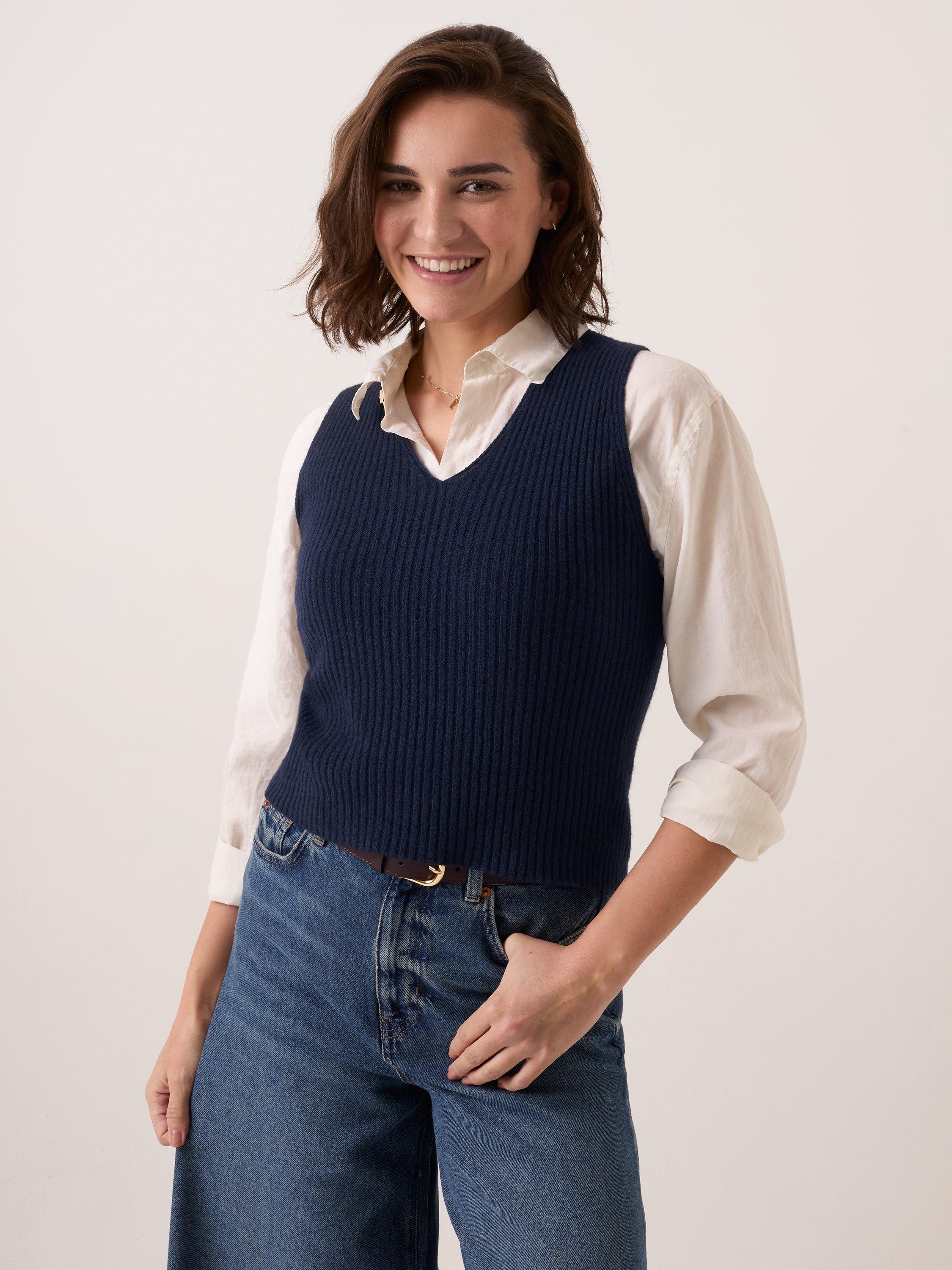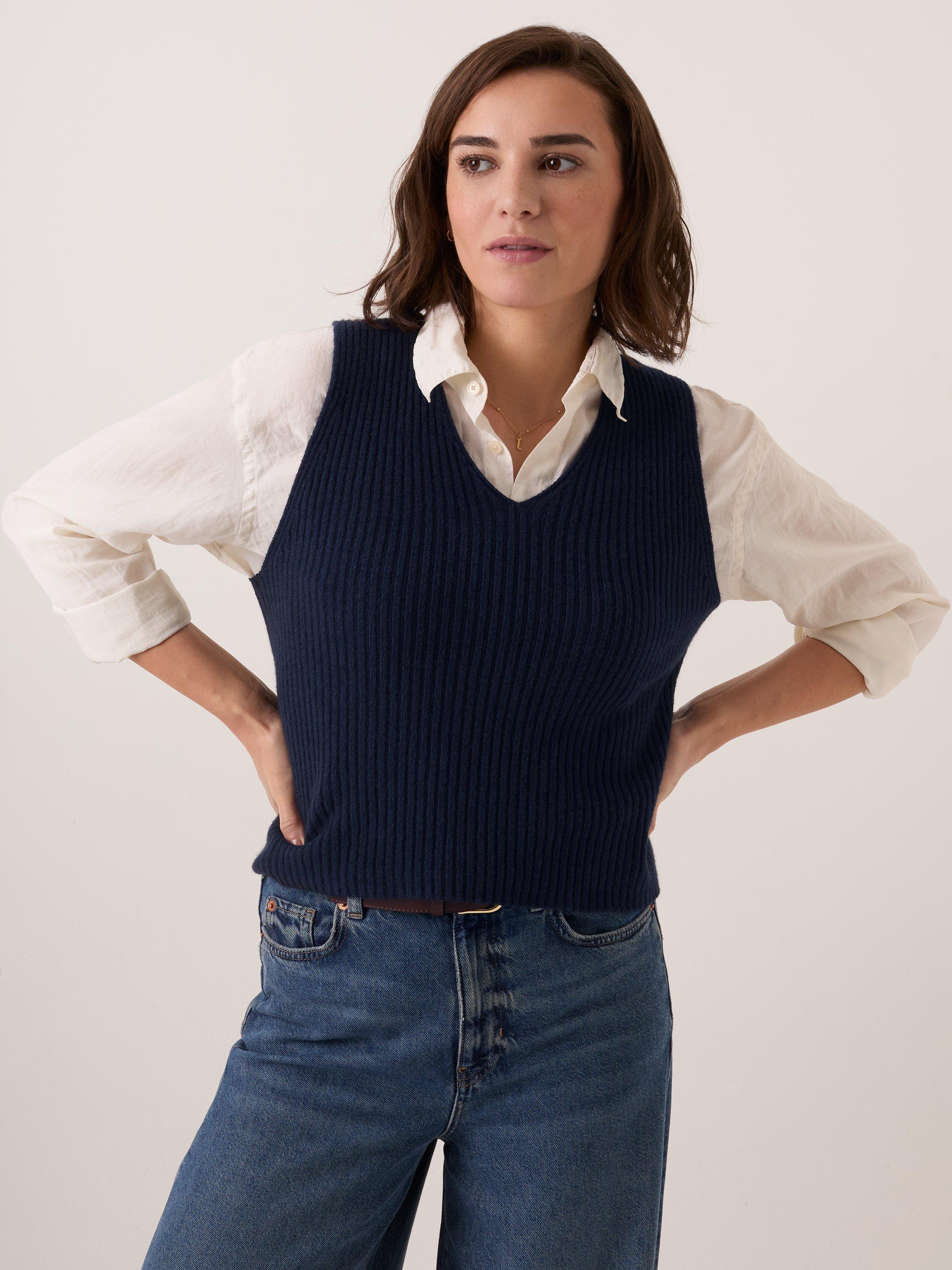 Celtic & Co.V-Neck Ribbed Tank Top, Navy
