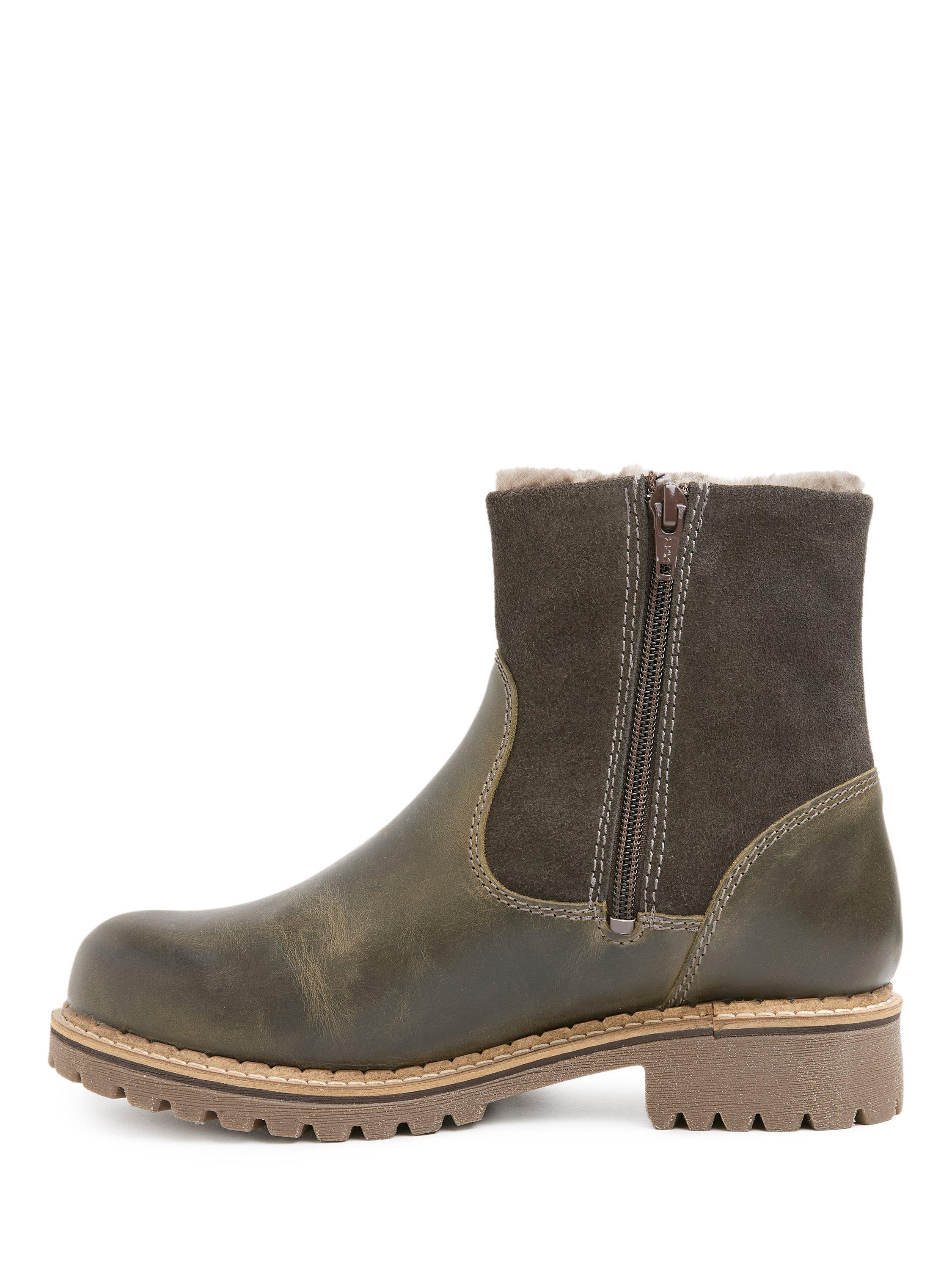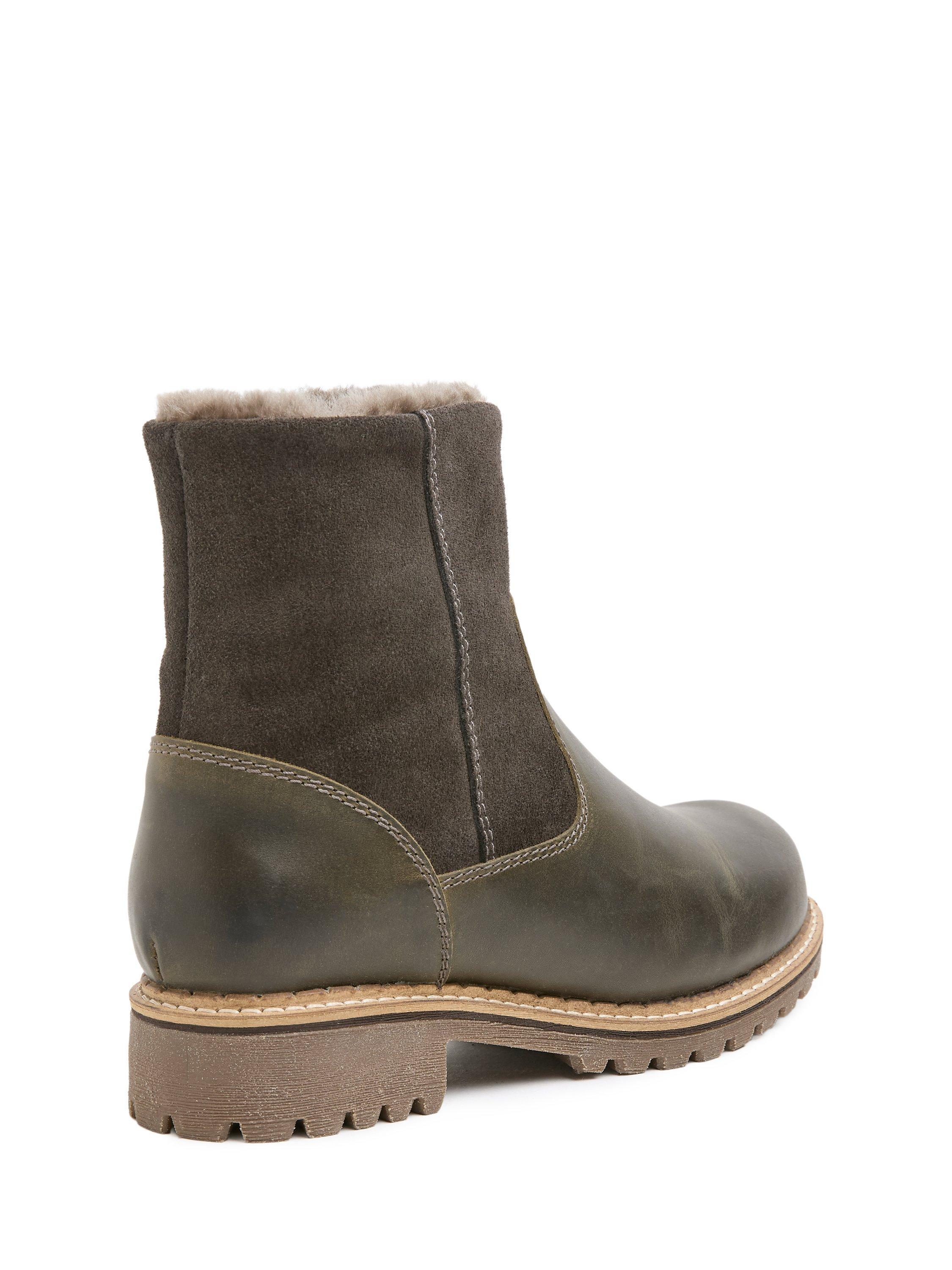 Designed for comfort and protection, these ankle boots feature an upper of Cow Leather and Suede, and are luxuriously lined with Sheepskin and Leather. They include a full-length zip on the inner side, a real sheepskin lining with a leather insole, a waterproof membrane throughout, and vulcanised lining seams for water repellency.