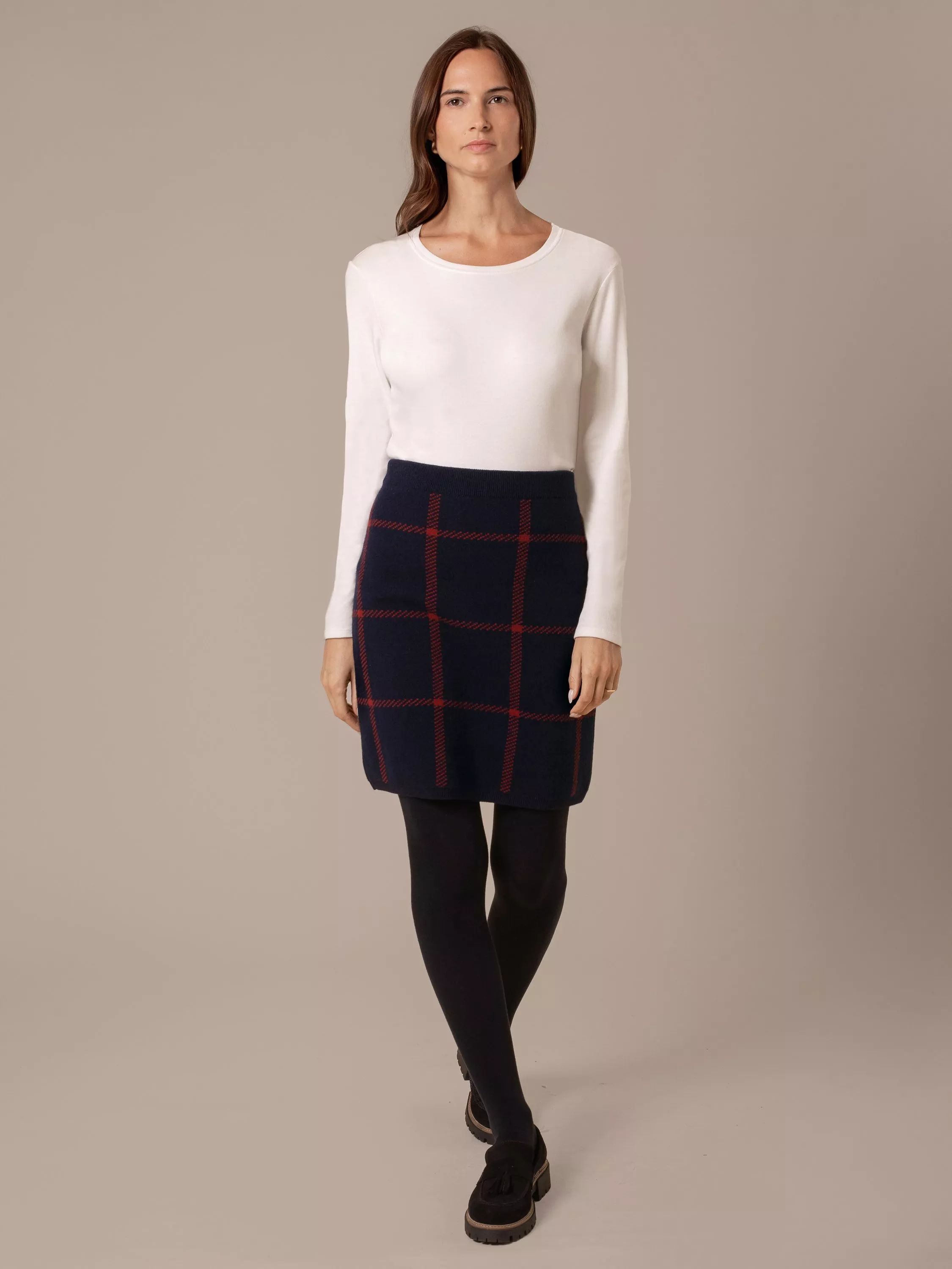 This short lambswool skirt features a windowpane check in a birdseye knit for a lightly structured look. Designed with an elasticated waistband for comfort, it offers a refined feel that can be worn for both casual and semi-formal occasions.