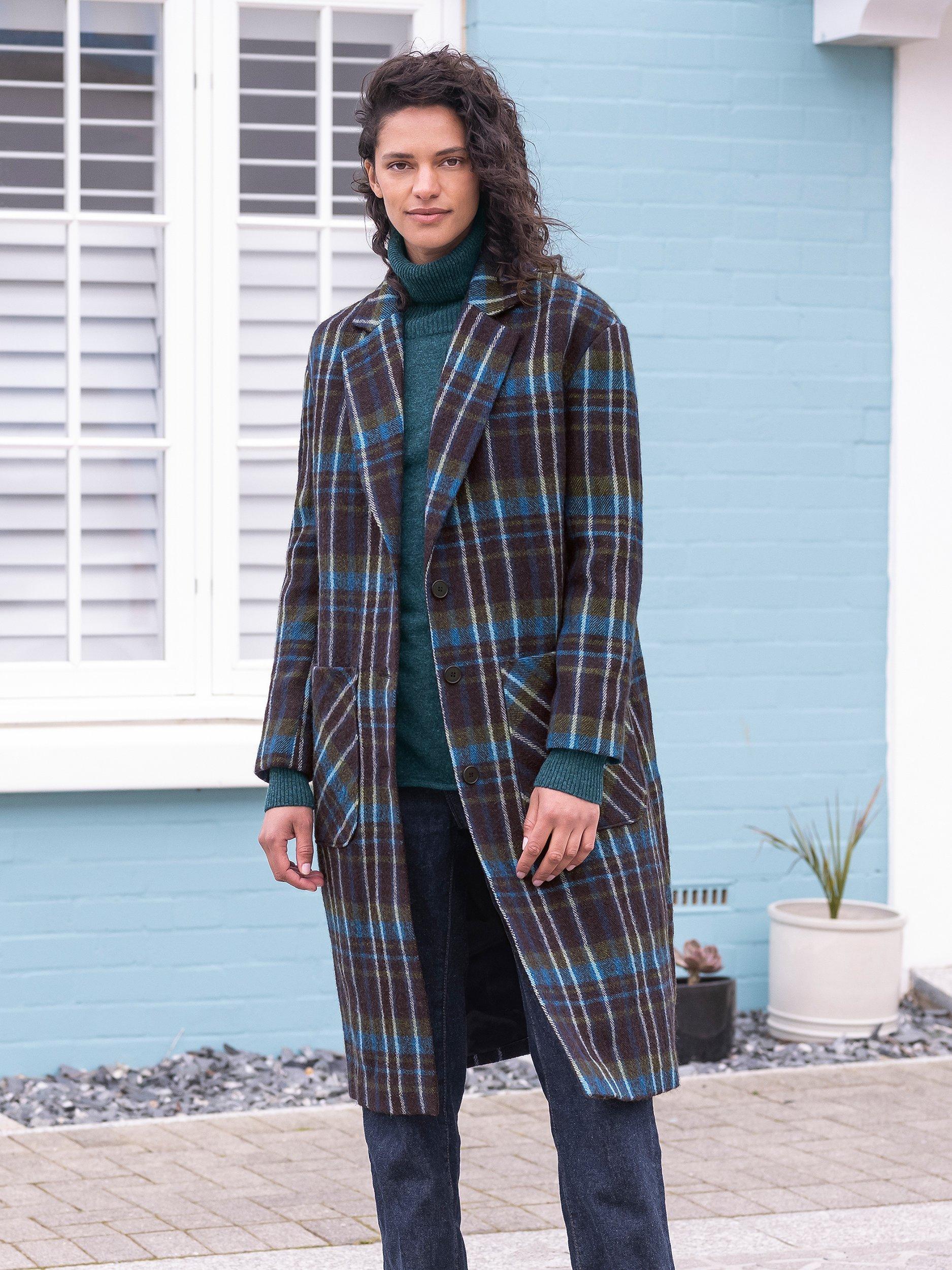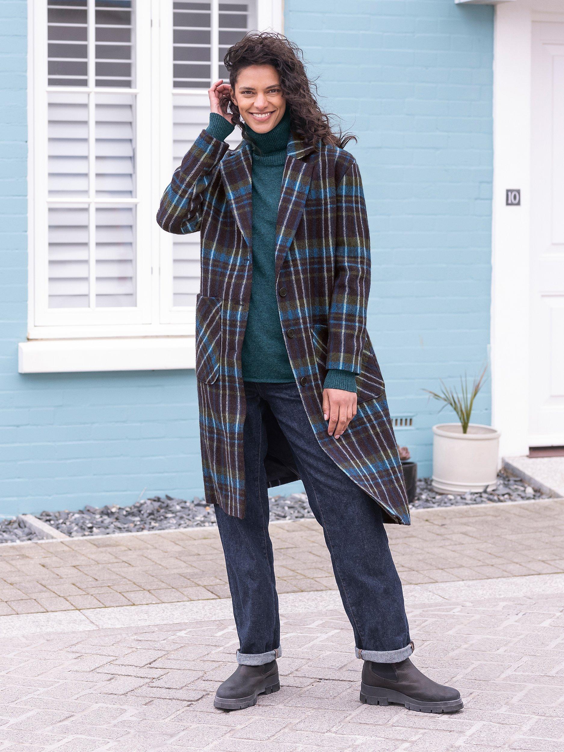 Celebrating minimalist silhouettes, this coat from Celtic & Co. falls to a versatile knee-length hem to keep out the chill.