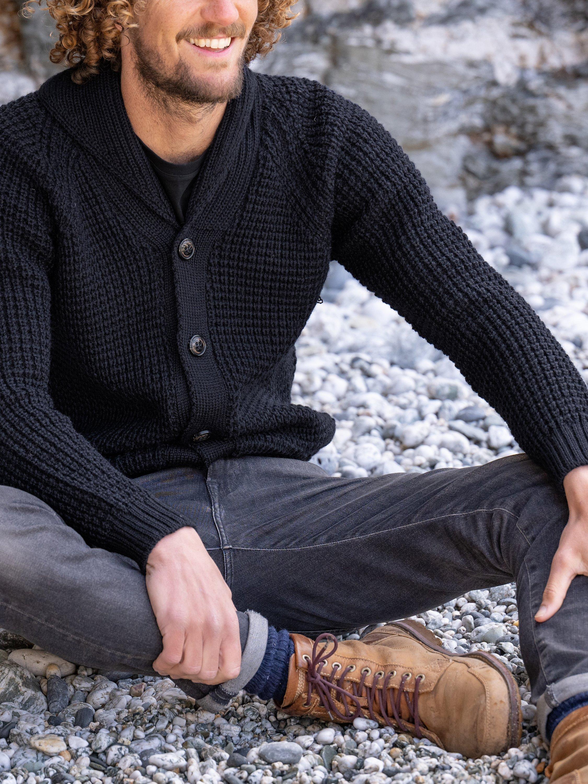 A great layer for hitting the outdoors, this Celtic & Co. cardigan is crafted in 100% British wool spun here in the UK and knitted with a chunky waffle stitch that'll keep you warm without it feeling weighty.