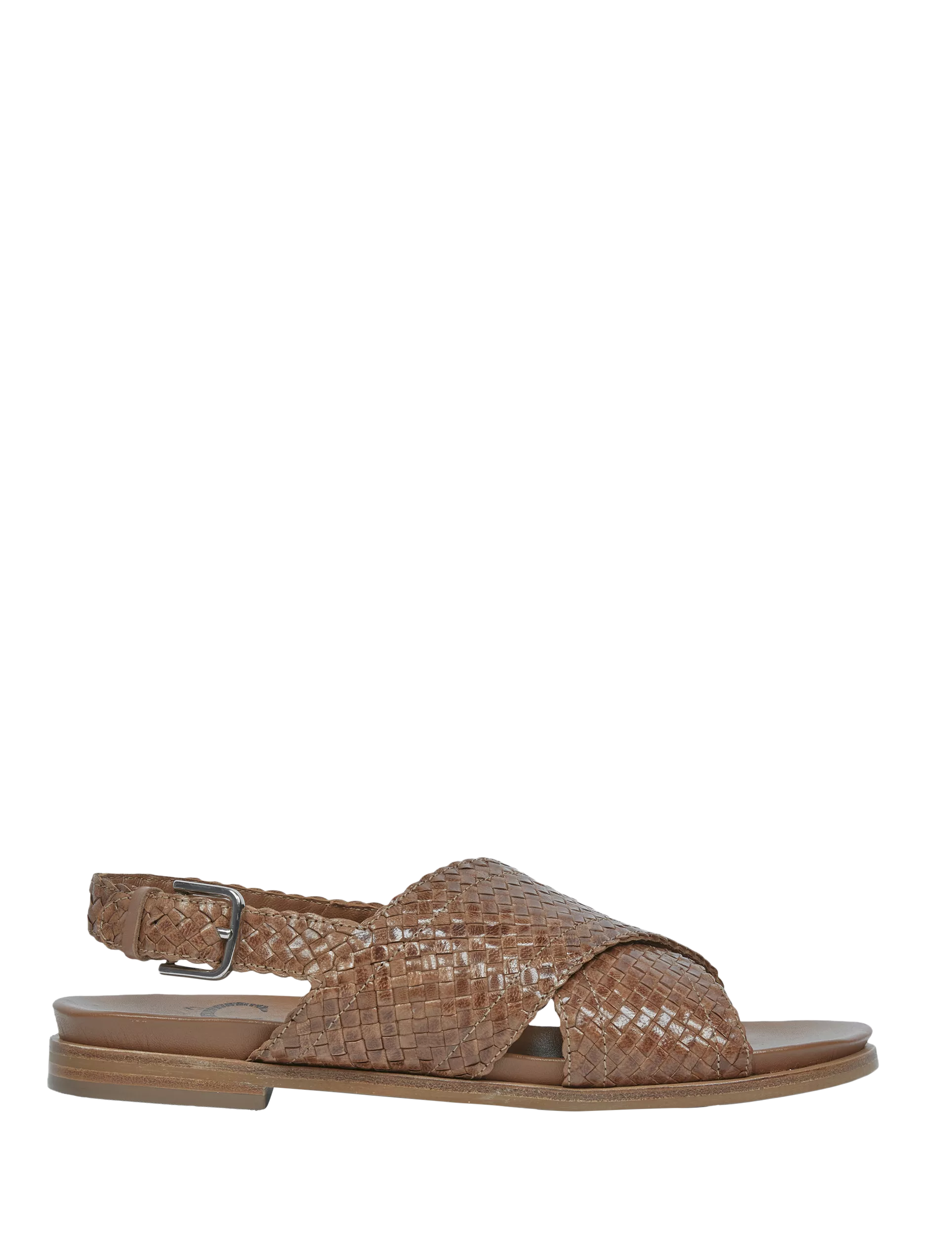 Woven from pure leather and perfect for the warmer weather, this cross strap sandals from Celtic & Co. sit on a flat heel and feature an adjustable buckle fastening at the ankle.