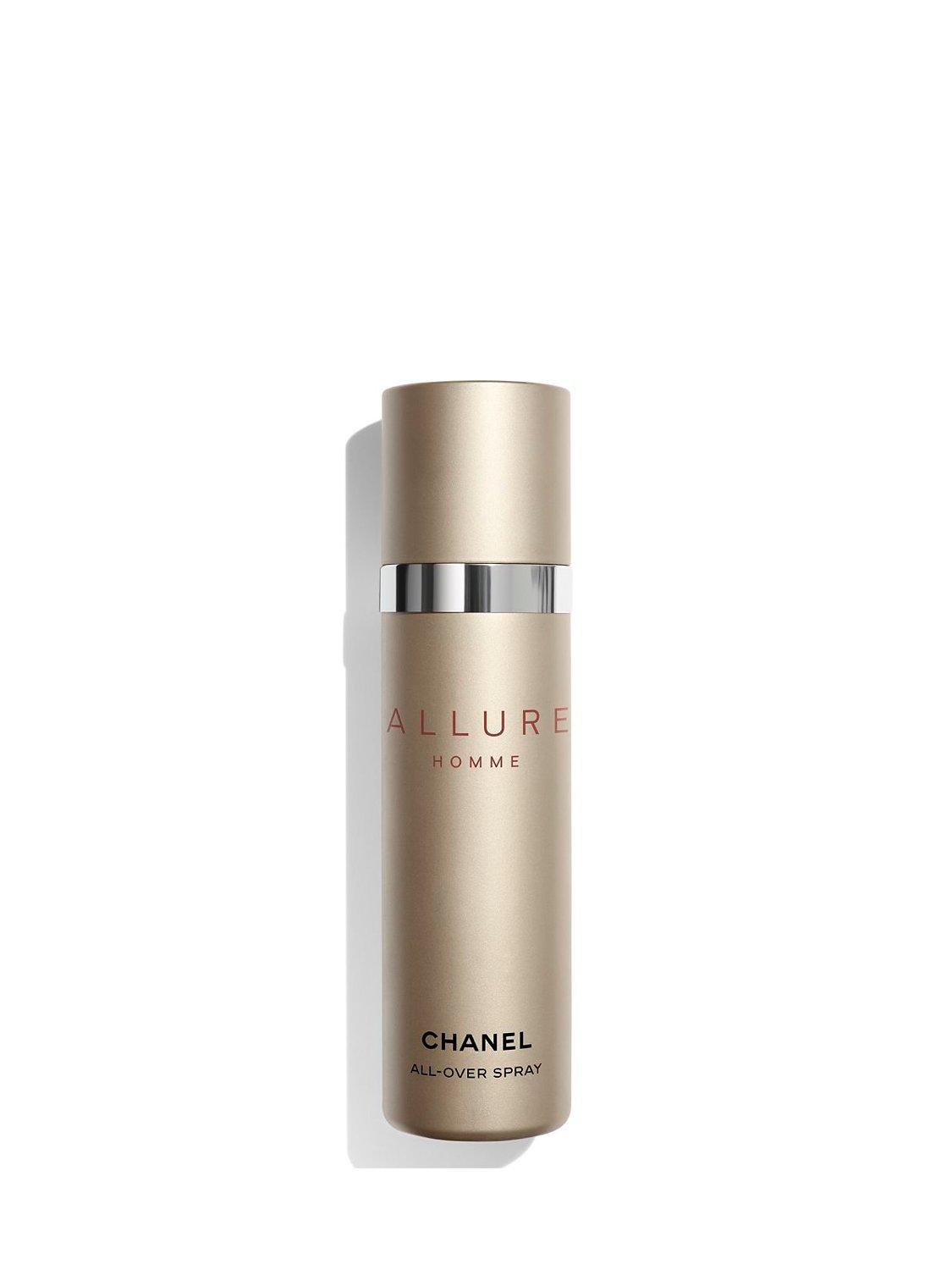 The fresh, spicy, woody scent of ALLURE HOMME, in a fresh and hydrating fragrance body spray, a new way to wear fragrance. Infused with Japanese green citrus extract, an active ingredient developed by CHANEL, this All-Over Spray helps keep skin feeling comfortable and hydrated. A light mist leaves it subtly scented.