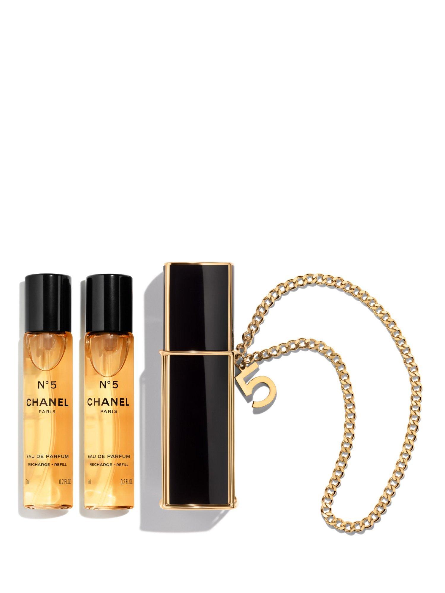 The new N°5 Eau de Parfum purse spray is both wearable and portable, so it can go wherever you do. Slide it into a bag or slip the jewellery chain around your wrist, then prolong your scent trail throughout the day with just one twist.