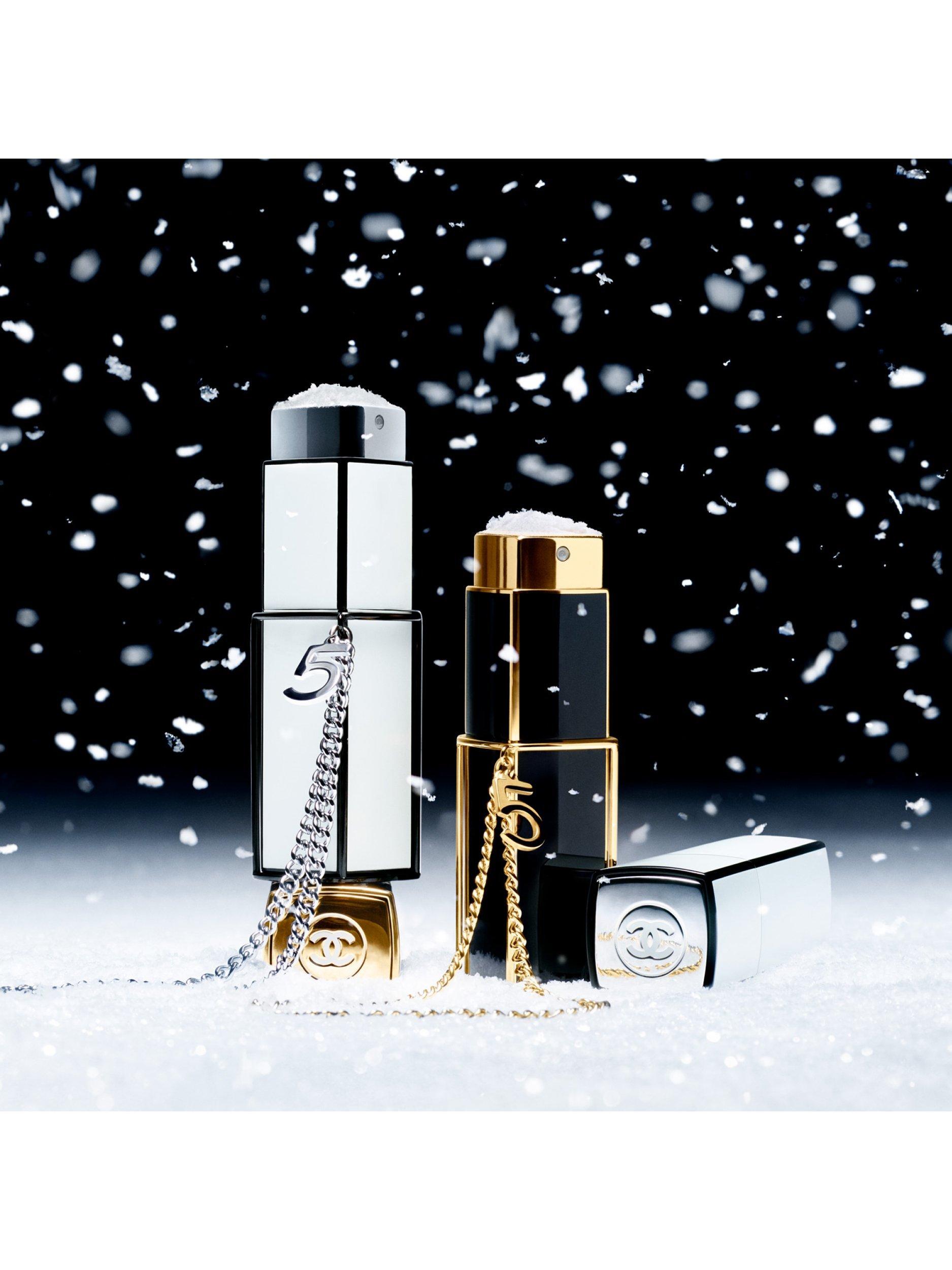 This holiday season, discover an all-new way to wear fragrance. The new limited-edition N°5 Eau de Parfum purse spray is adorned with an accessory that complements its golden trim. It features a jewellery chain bearing Gabrielle Chanel's favourite number, which allows it to be worn around the wrist. Add this piece to your collection and show it off as often as you wish.