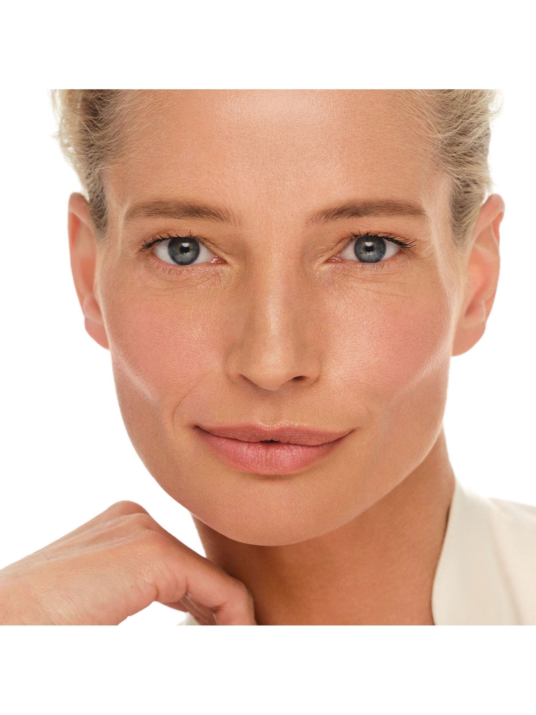- Nasogenian folds and crow's feet wrinkles appear less visible**