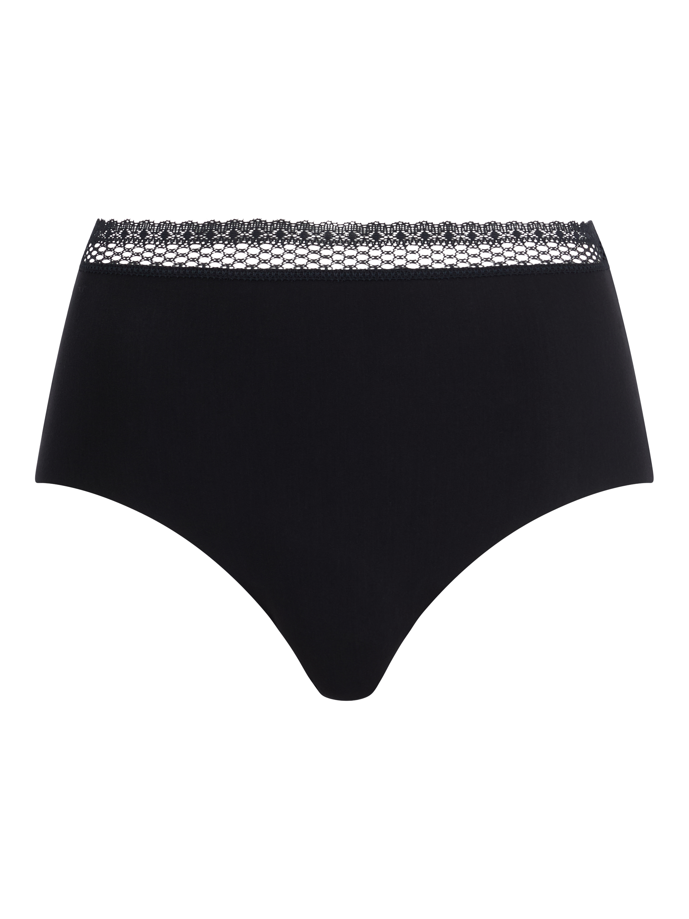Discover the perfect everyday high-waisted brief by Chantelle, crafted from naturally soft and breathable fabrics, including modal and recycled lace trimming. Enjoy invisible comfort with a clean-cut design that eliminates visible panty lines, and experience good coverage over the tummy for added comfort. Designed in France.