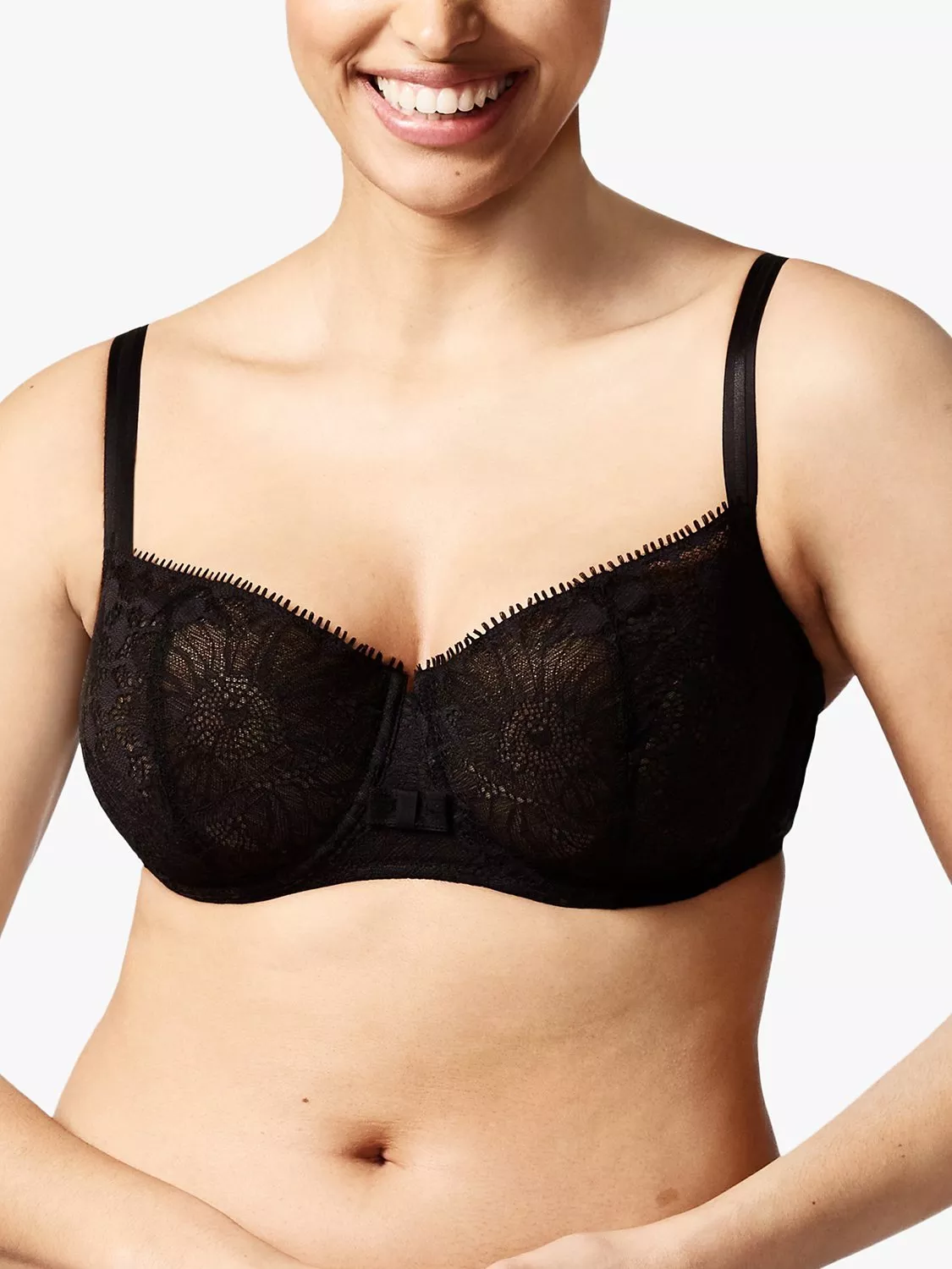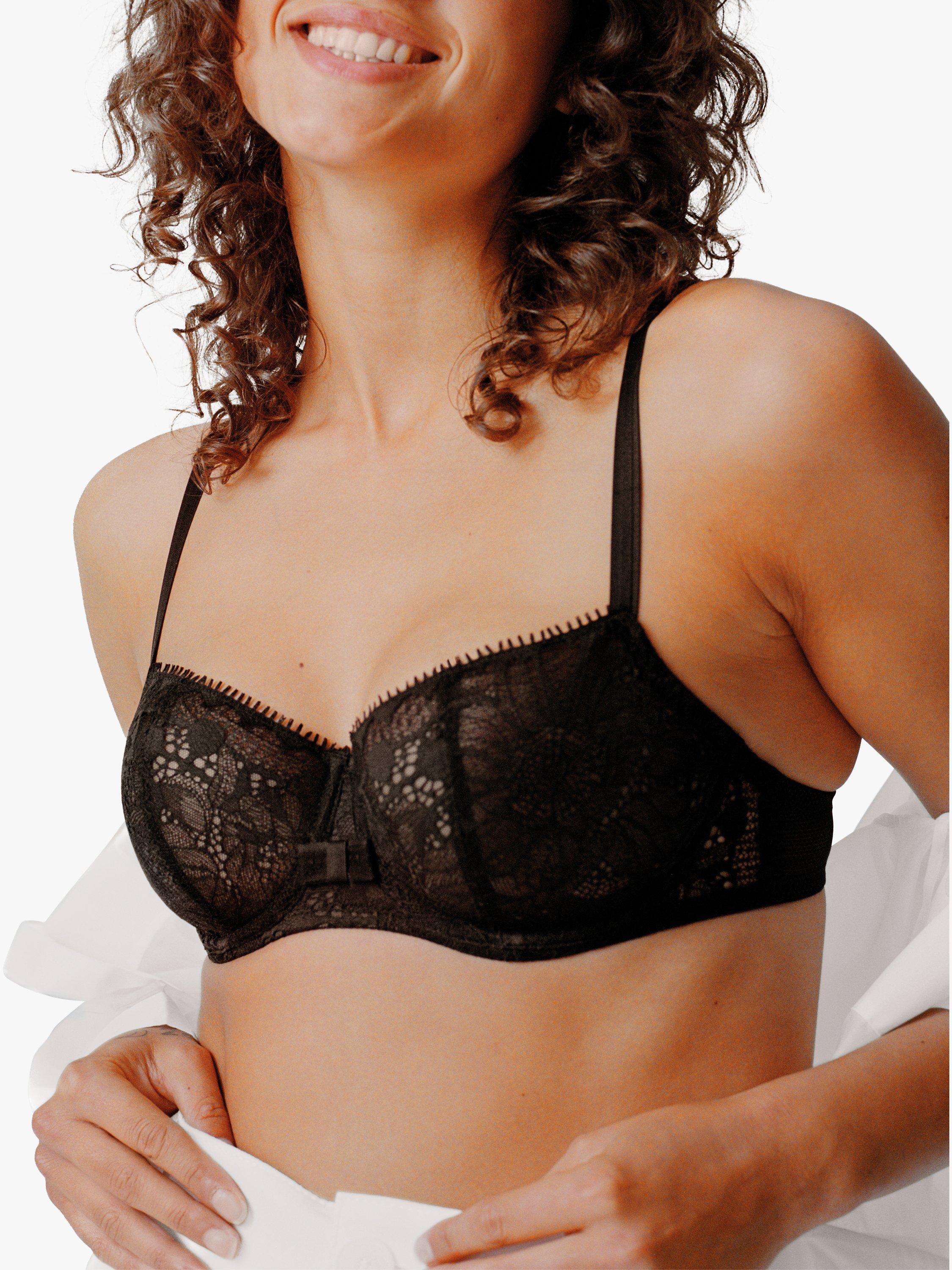 The Day to Night Lace Half Cup Bra offers a light look and feel with more coverage than the traditional demi bra shape. This elevated everyday bra features a delicate lace, sheerness along the neckline and a soft opaque knit cup.