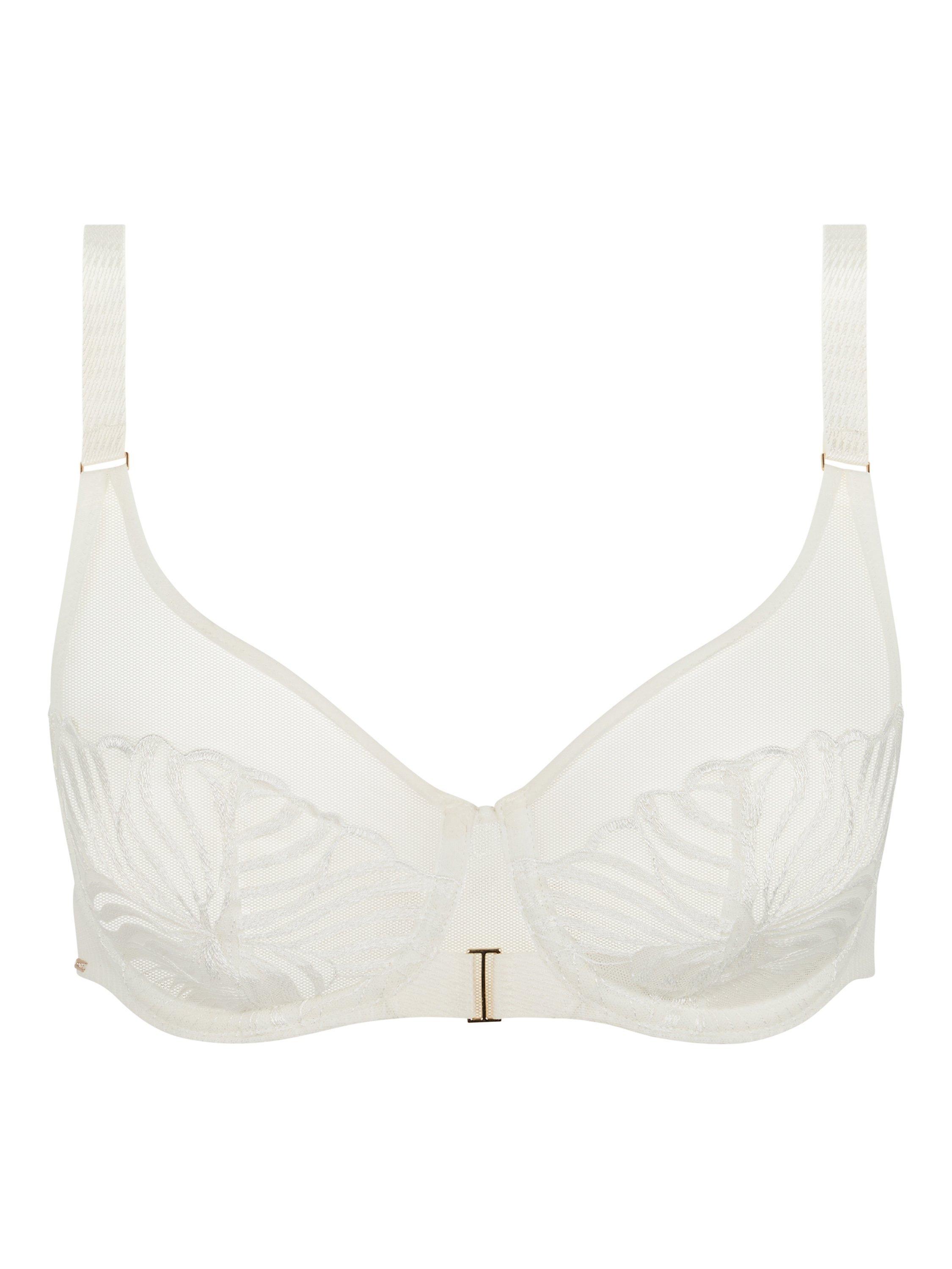 Drawing from Chantelle's heritage, Legend blends botanical embroidery, alluring transparency, and signature craftsmanship, featuring timeless designs rooted in tradition. This full-coverage, unlined and underwired bra is made to provide a lifted bust effect and has a tall chimney back for support and to keep the straps centred. Also features fully adjustable straps adorned with a golden jewel and Chantelle golden plate at the side. OEKO-TEX® Standard 100 certified. Designed in France.