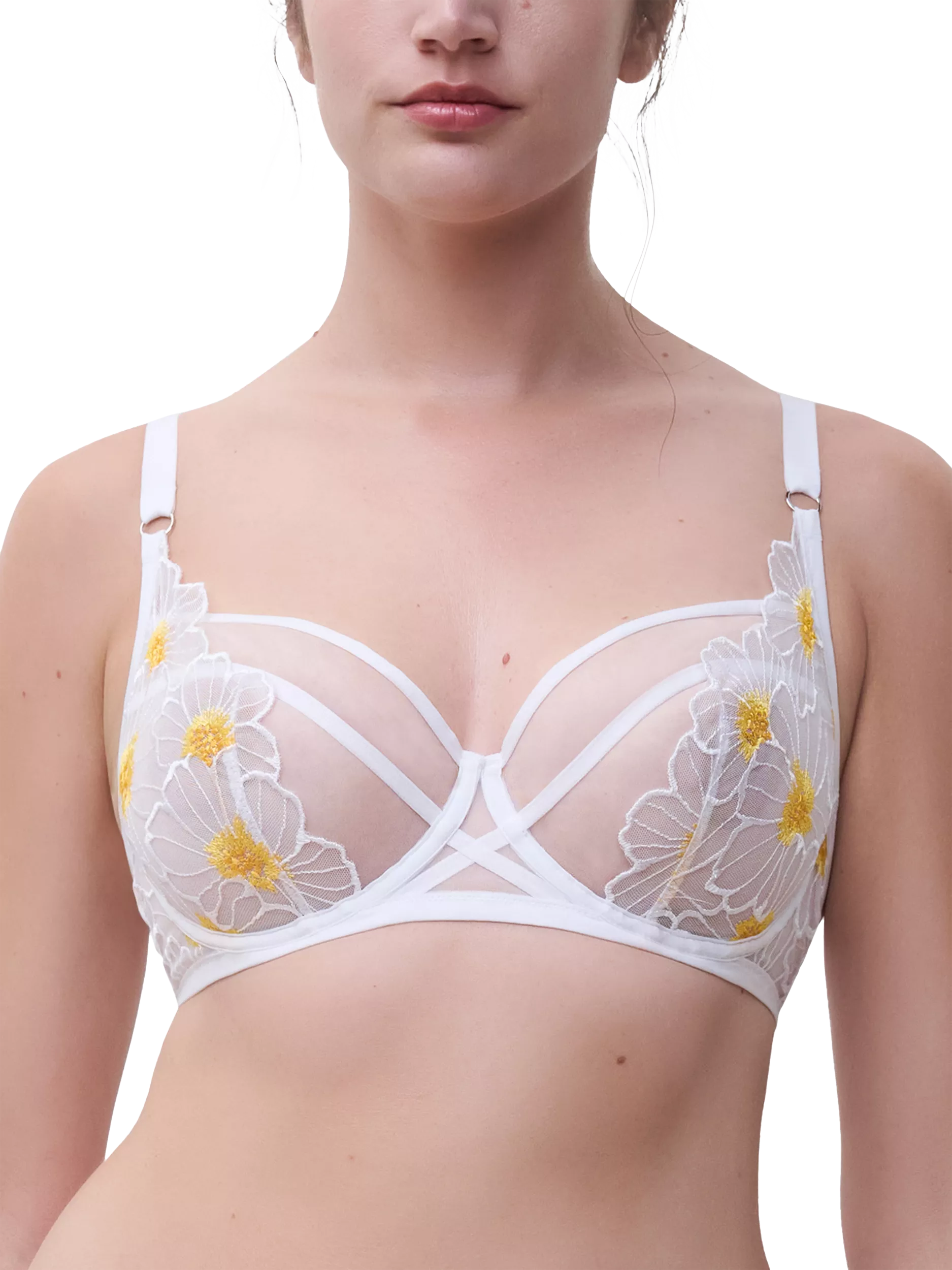 Lush, bewitching and assertive seduction. Chantelle's Lush full cup bra has maxi daisy embroidery, highlighted by an illusion of bondage ties.