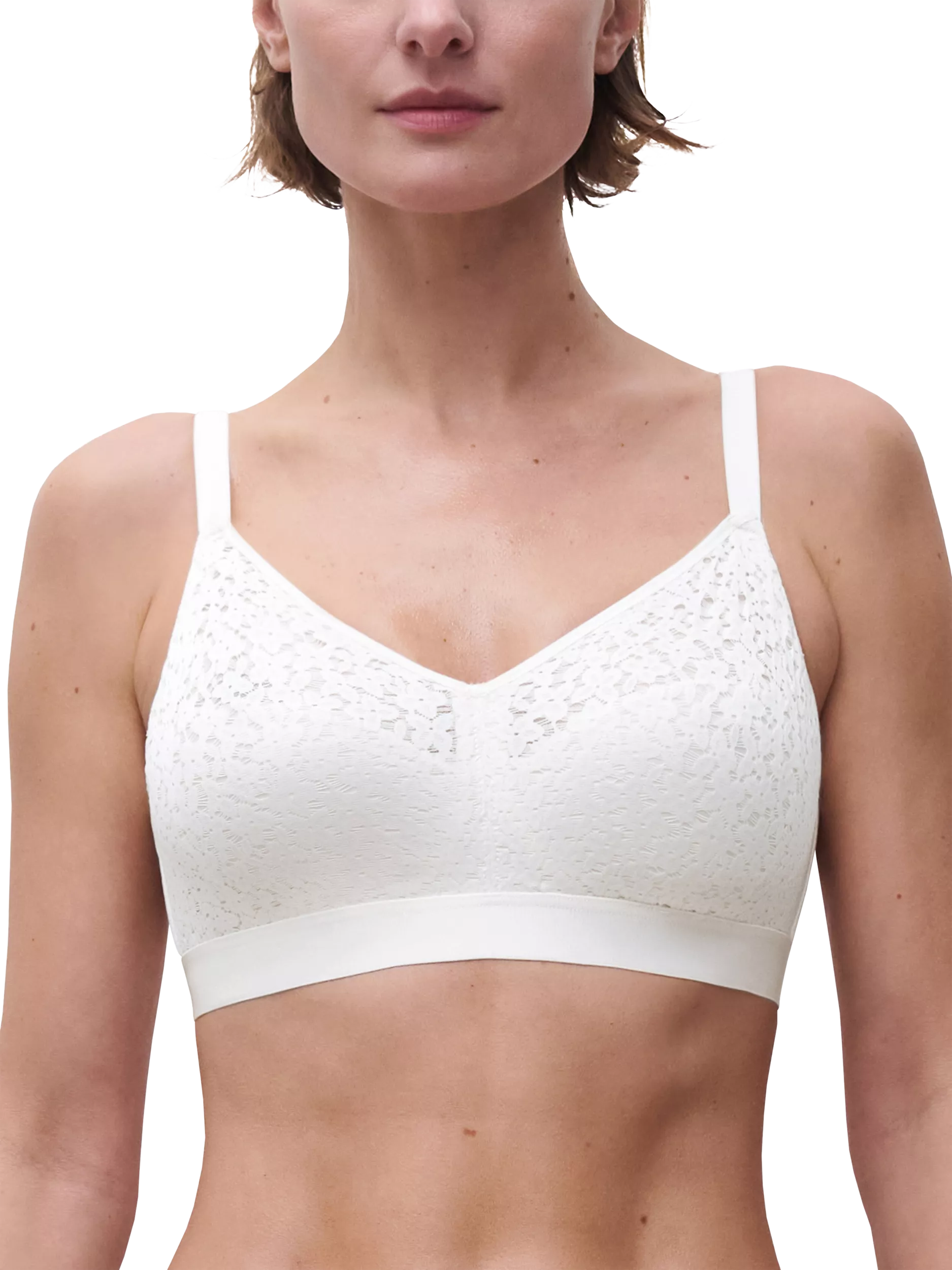 The Norah Non-Wired Support Bra has internal construction to allow impeccable support and reassuring coverage with all the comfort of a non-wired bra. The moulded cups are in an ultra-soft floral lace making them perfect for everyday wear. The unique, internal seamed construction gives you the lift and shape of a cut and sewn, but the ultra-flat overlay smooths everything out for an invisible look. The elastic and soft under bust band keeps the product in place all day and allows for comfort.