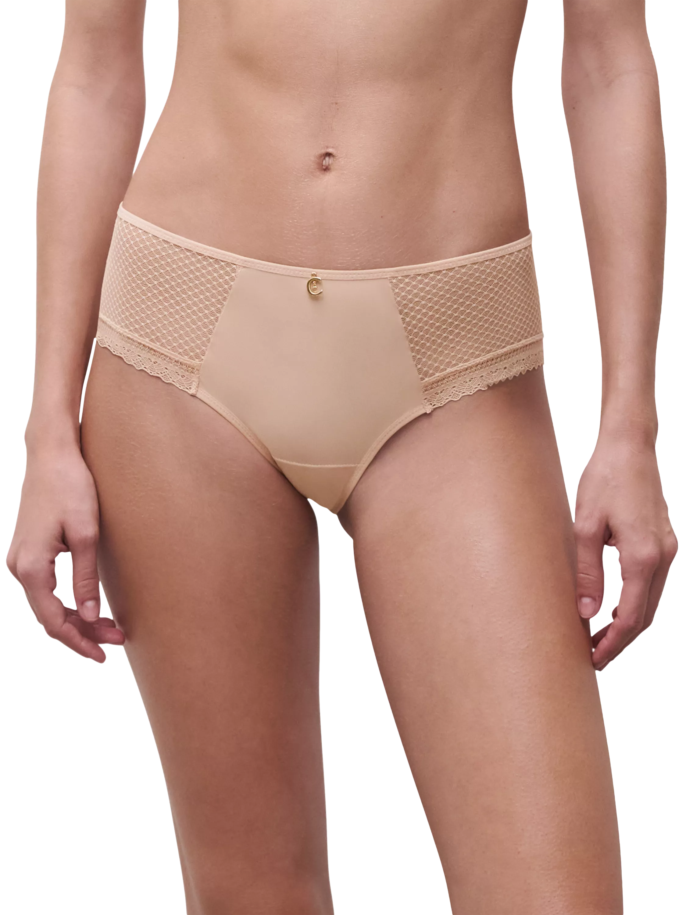 Designed for all-day wear, the Romance range from Chantelle blends delicate lace with breathable honeycomb mesh, finished with a chic contrast accent. These briefs offer lower coverage on the waistline and a more revealing mesh back for a sexy finish.