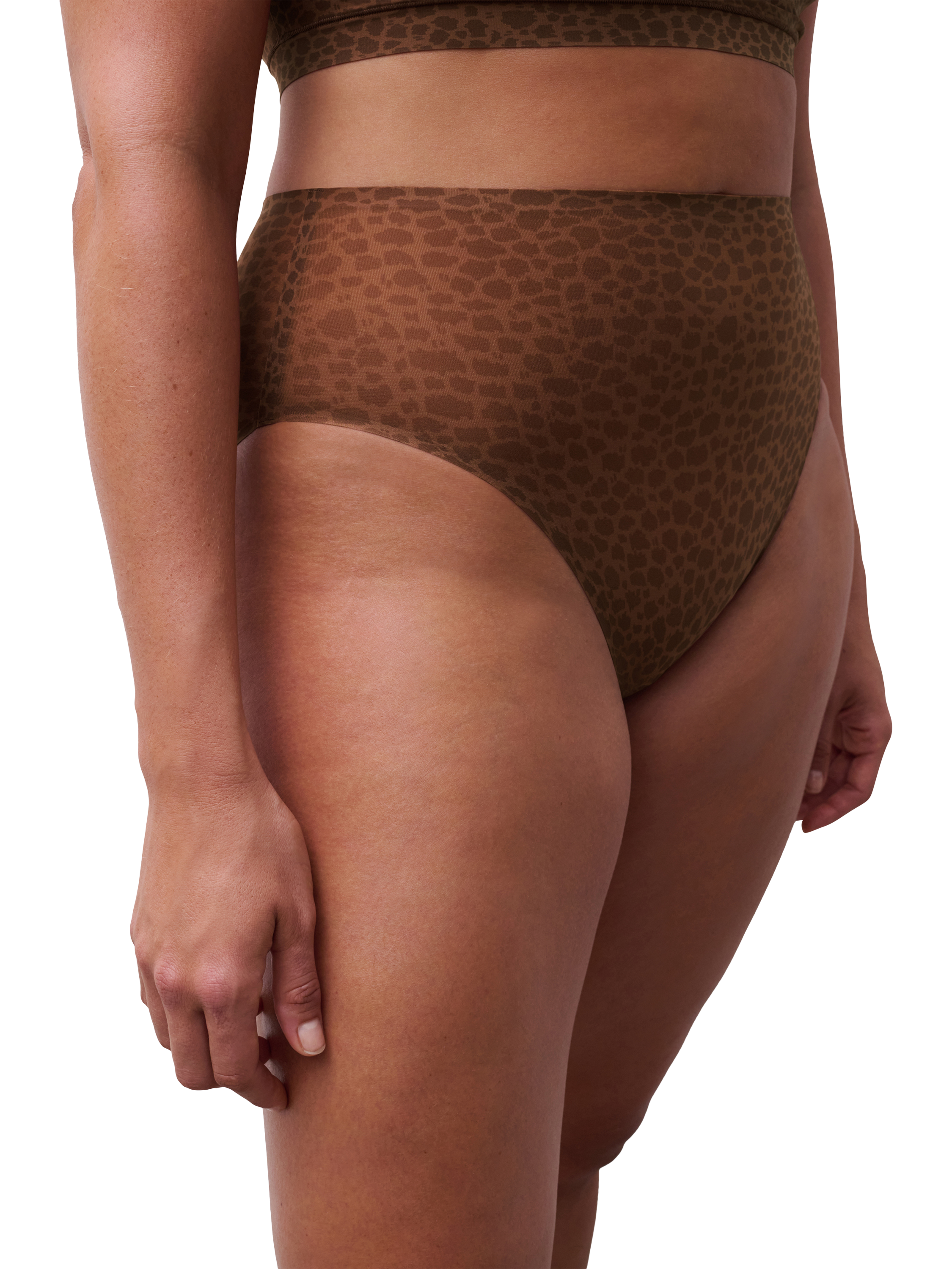 - Seamless high-rise silhouette with a high-cut look at the hip