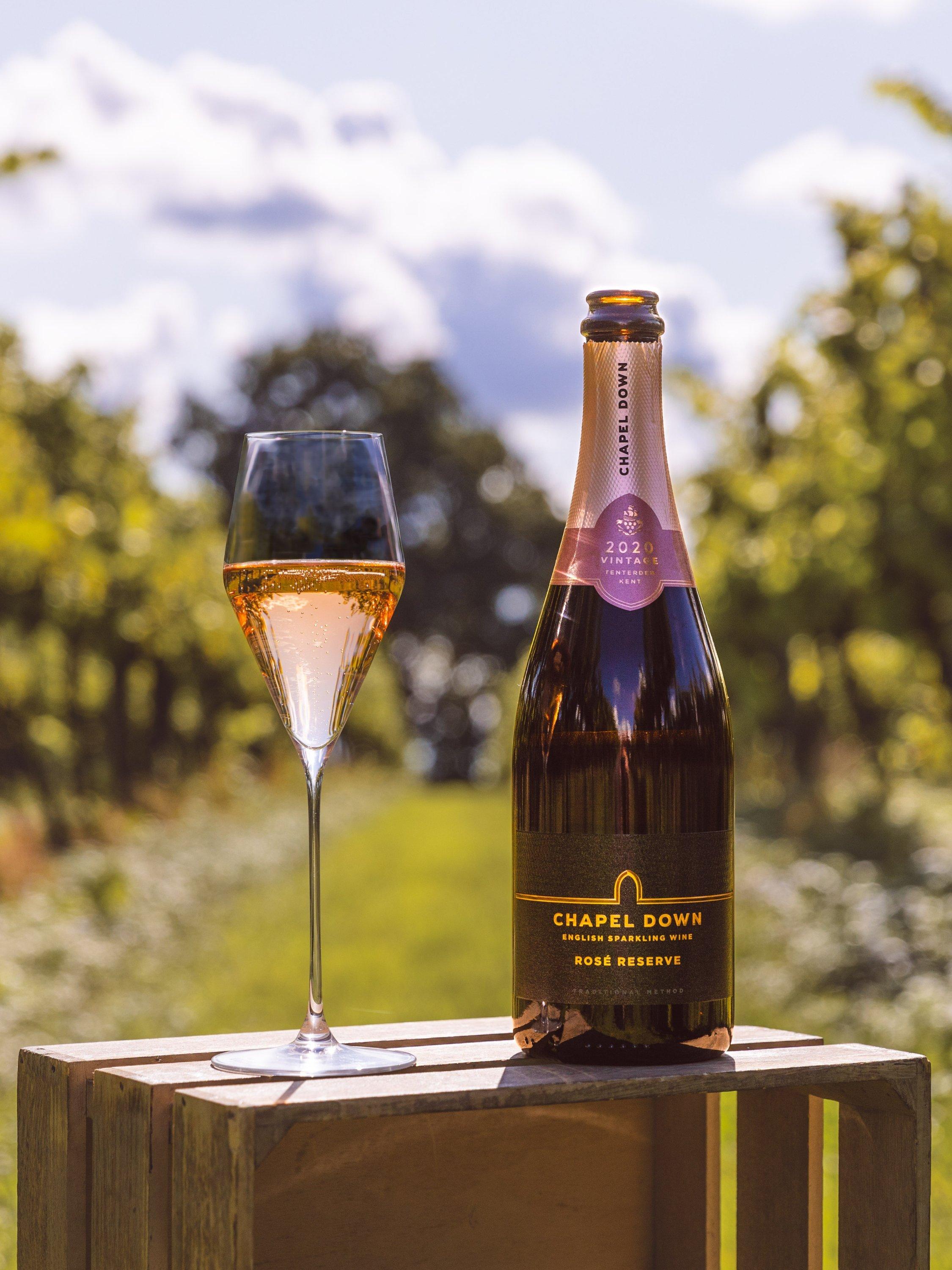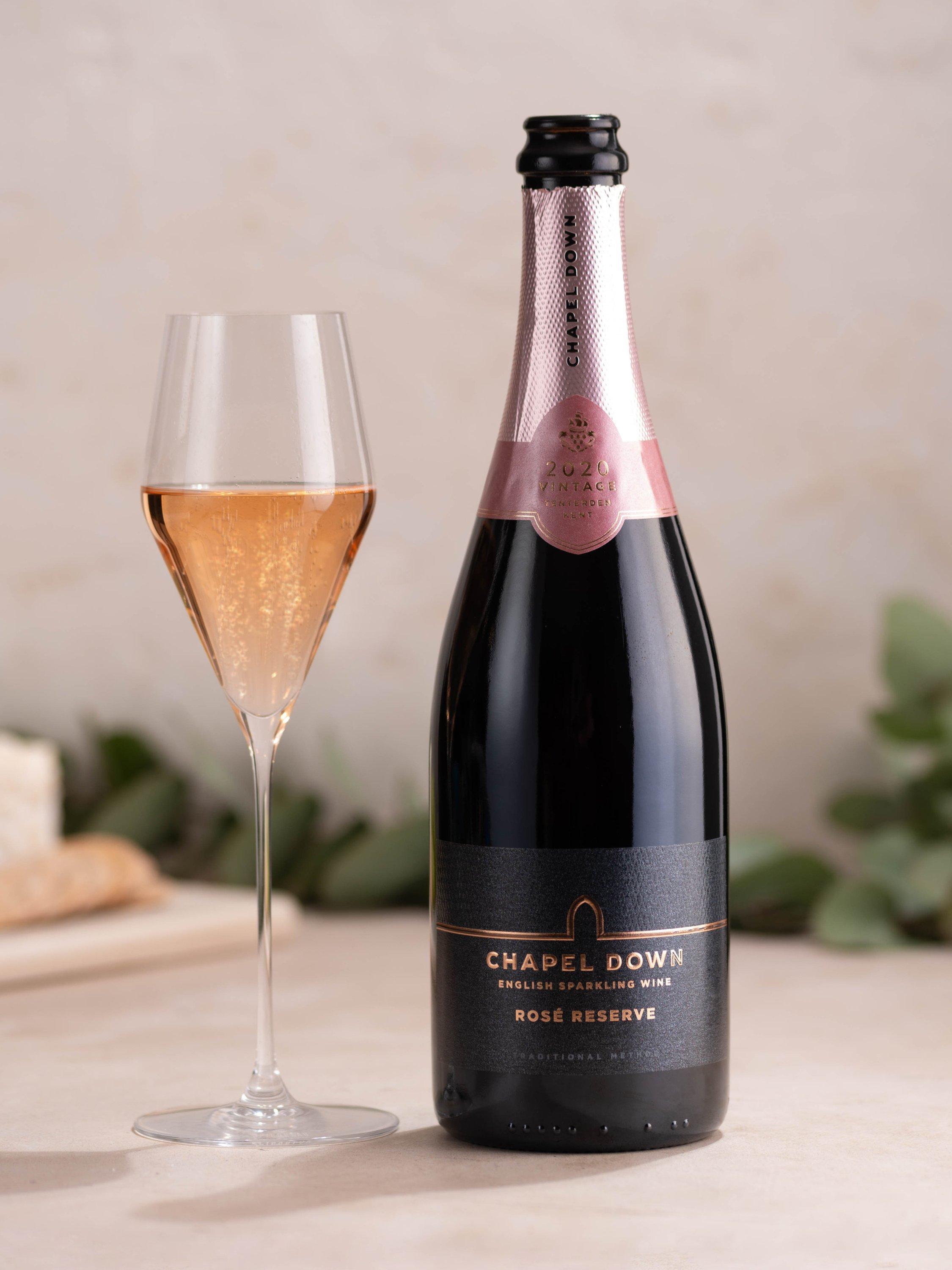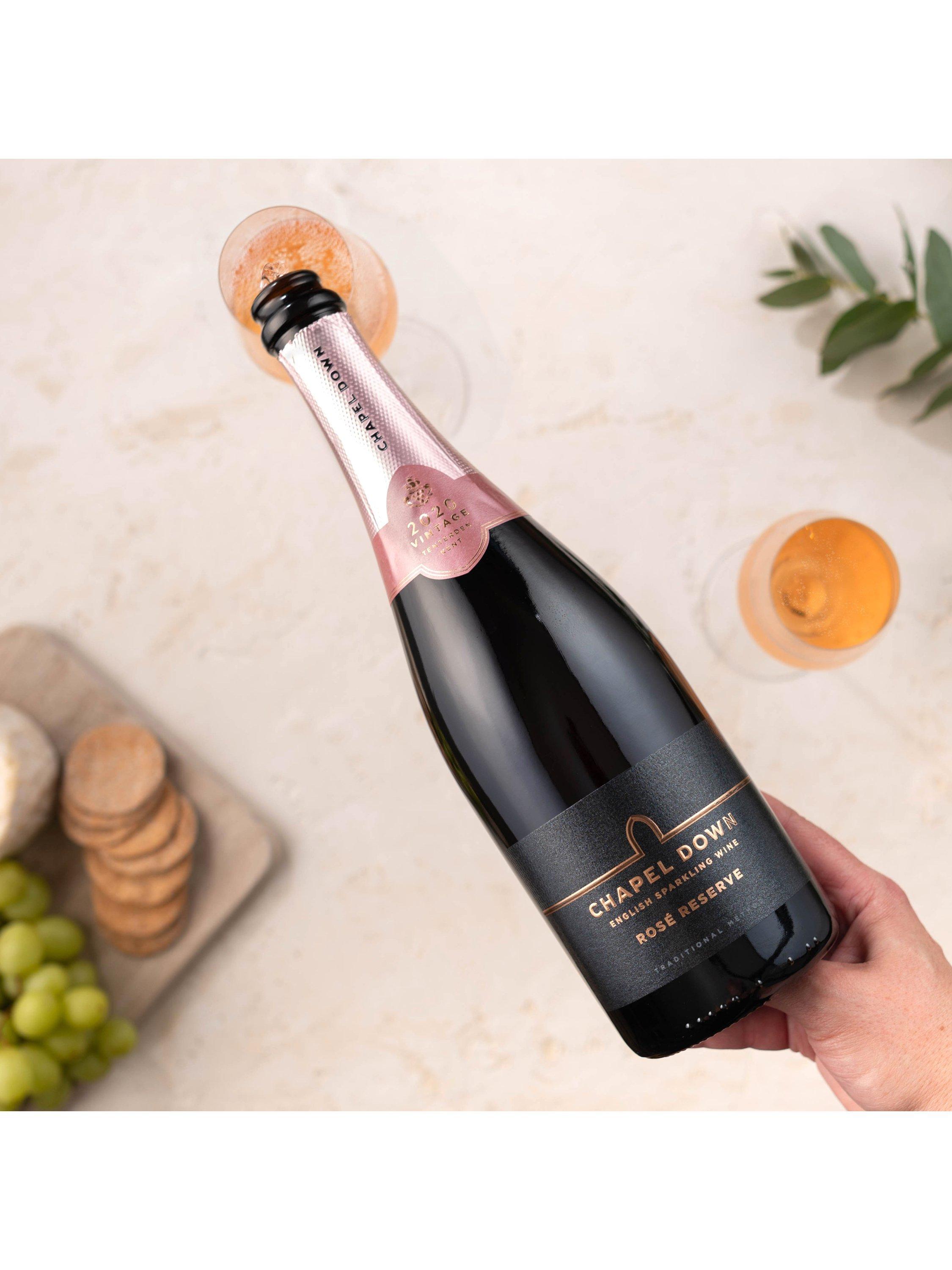 The award-winning Chapel Down Rosé Reserve 2021 is made from 96% Pinot Noir grape and matured on fine lees in tank for six months, before a further eighteen months ageing on lees in bottle before release. With aromas of wild strawberries, redcurrant and shortbread, this elegant rosé sparkling has a crisp, fresh palate and fine mousse.