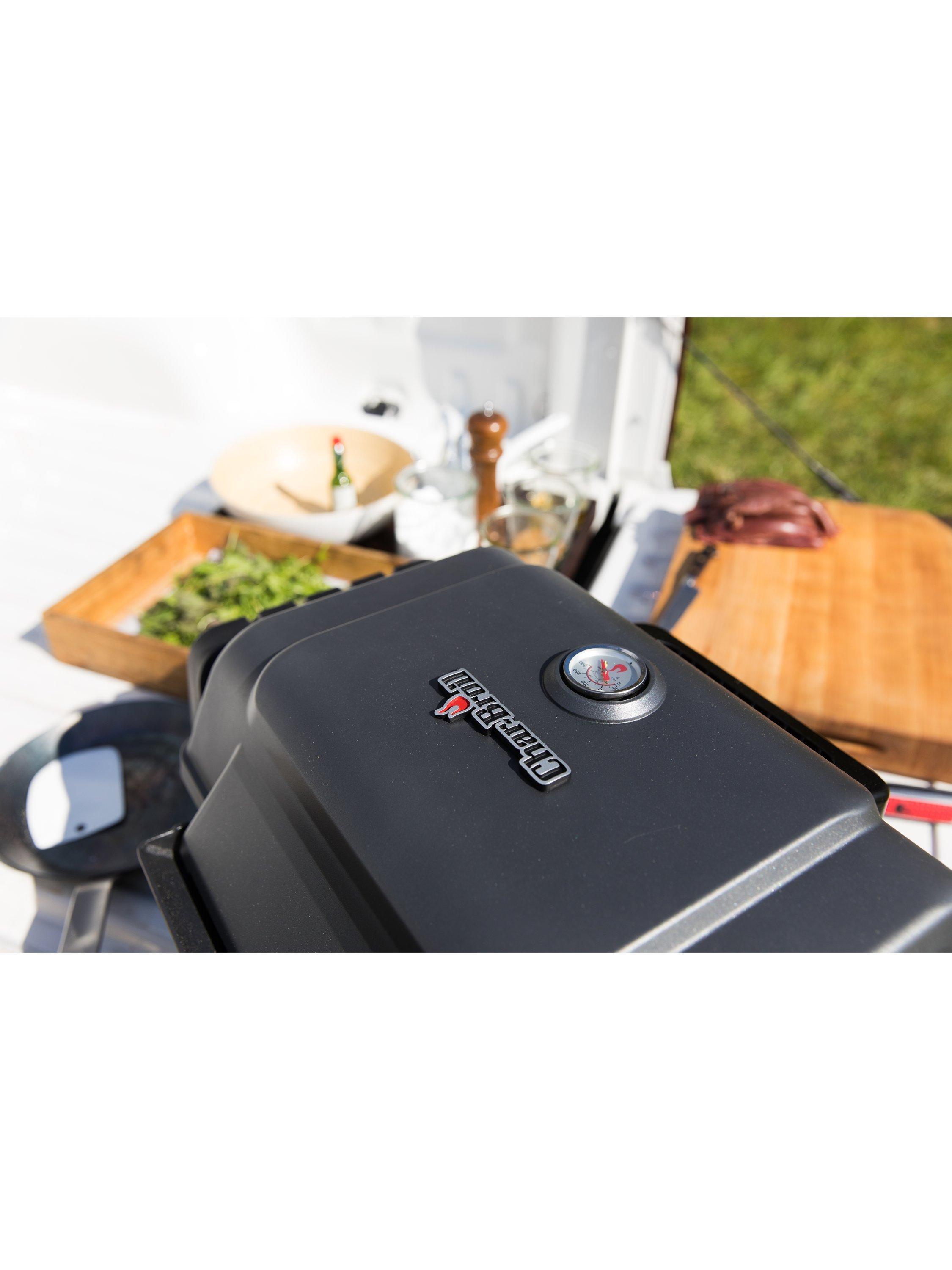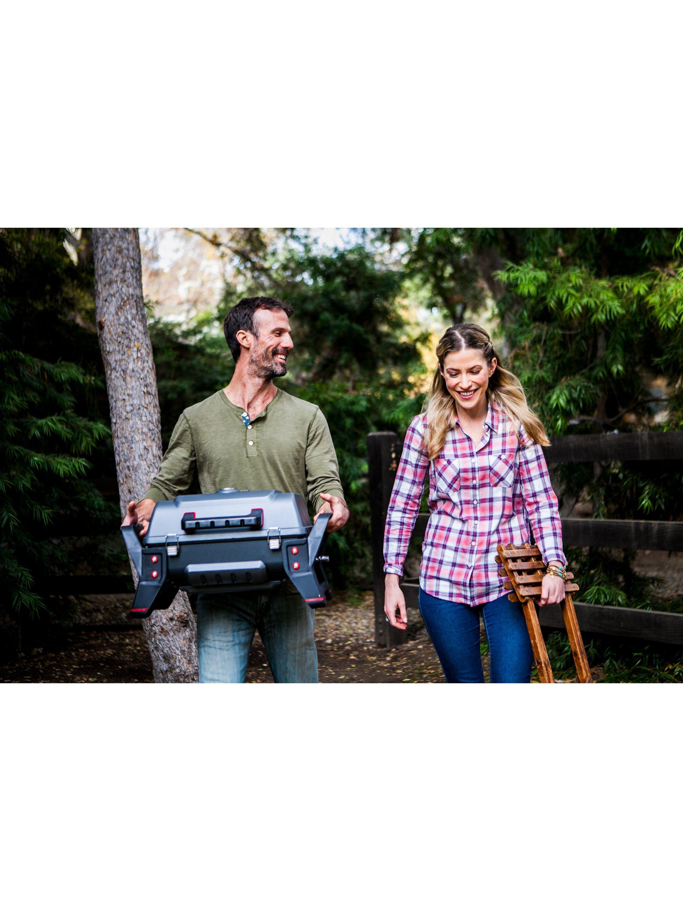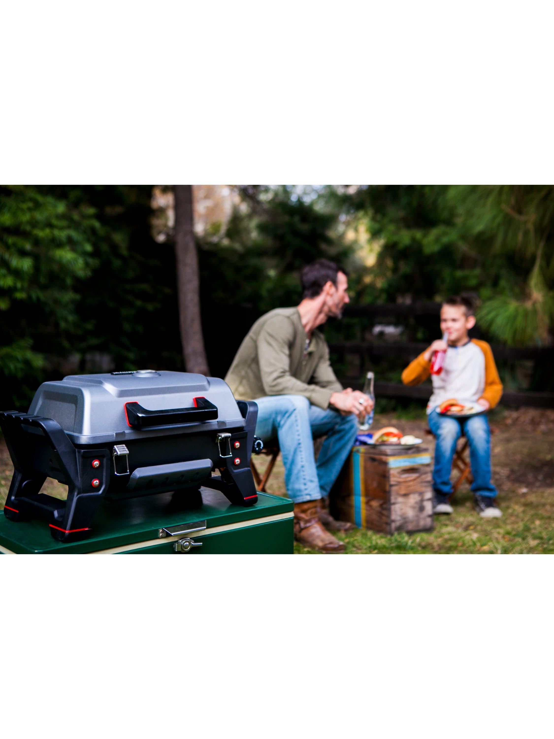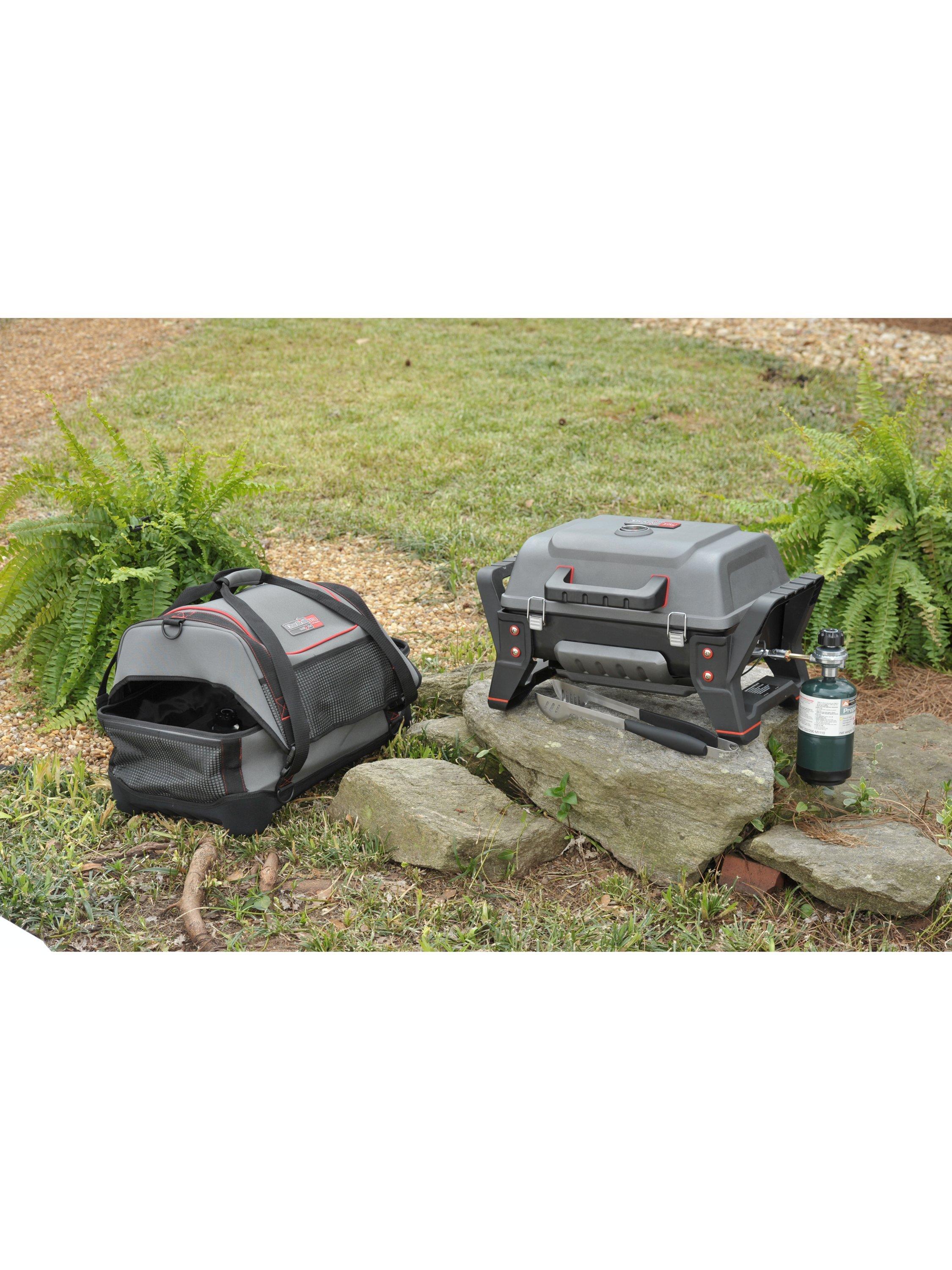 The Grill2Go portable gas barbecue is the rugged, go-anywhere grill that prevents flare-ups and cooks anything. With a stainless steel burner and grates, the Grill2Go from Char-Broil will not disappoint. A roadworthy powerhouse with rugged construction and a latching lid that doesn't mind getting tossed around a bit on your trip.