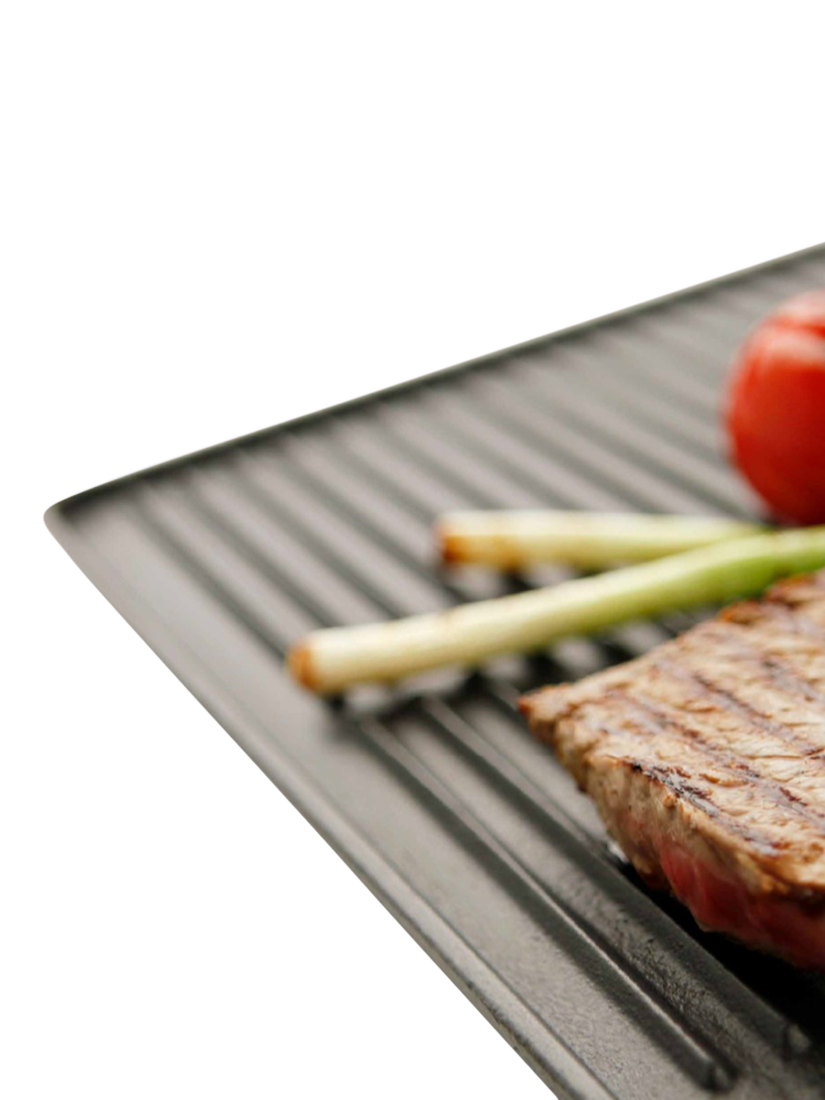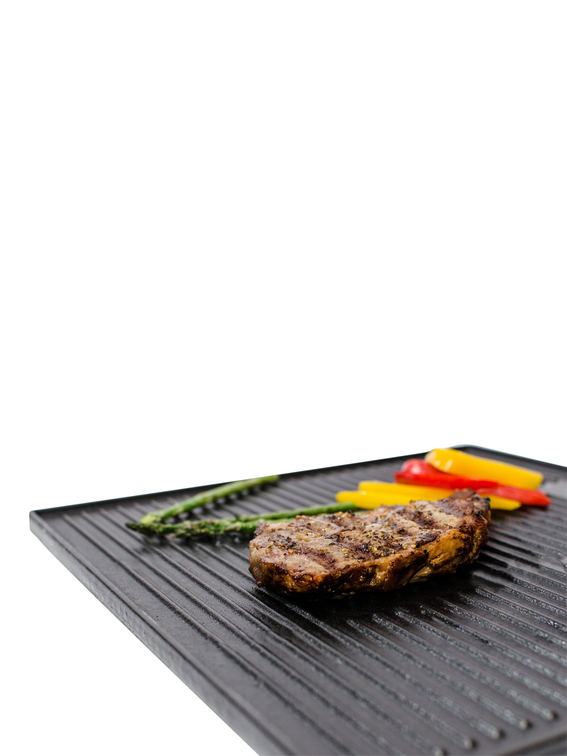 Then you can use the griddle in a variety of ways: whether for seafood, vegetables, desserts or steak. With the cast iron grill plate, your possibilities are endless. The grill plate has one smooth and one grooved side, so you don't have to go without your delicious sear stripes.
