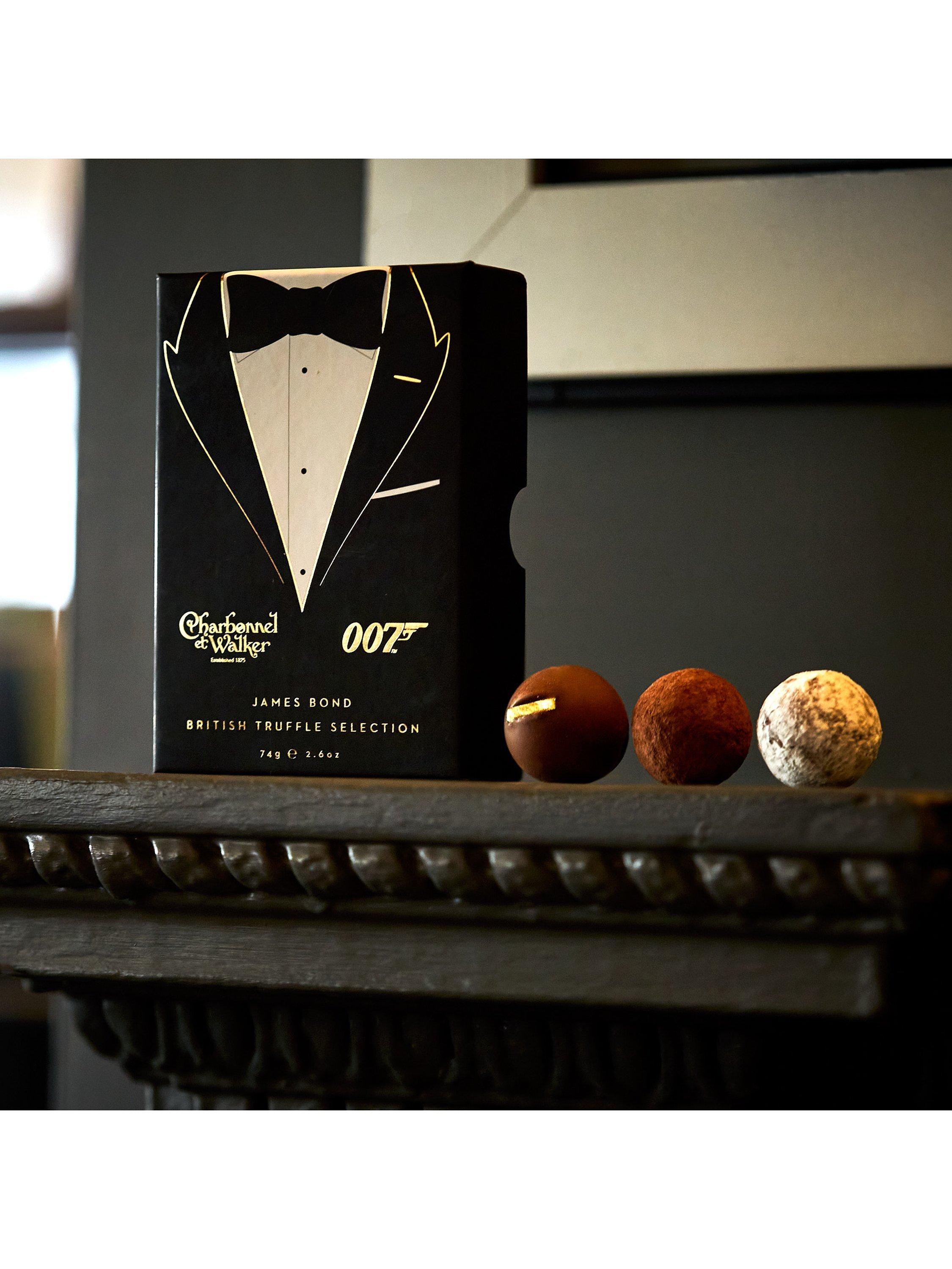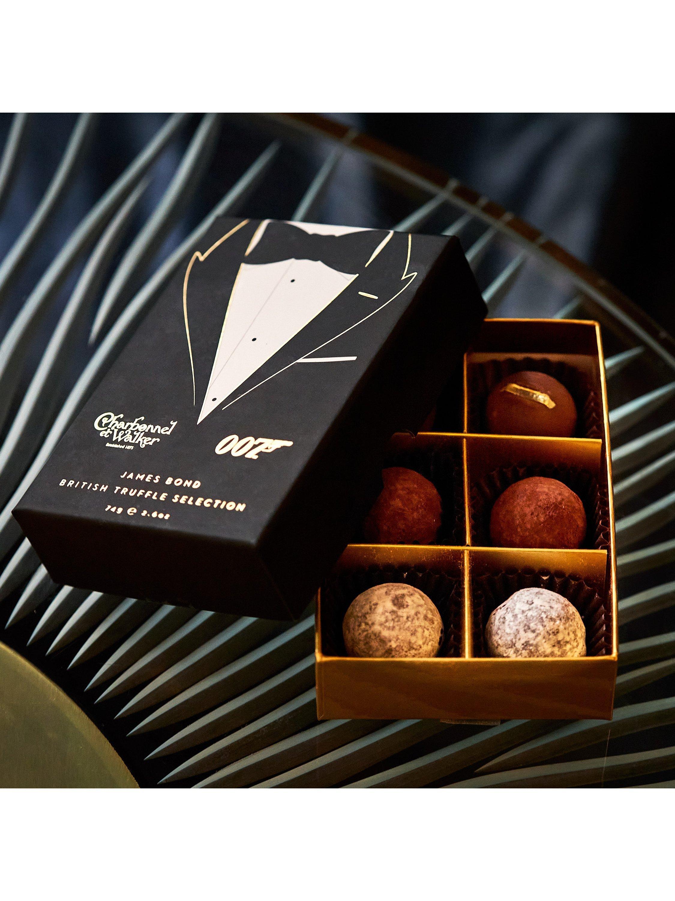A delicious British truffle selection, including a milk truffle, hazelnut gold leaf truffle and salted caramel truffle.