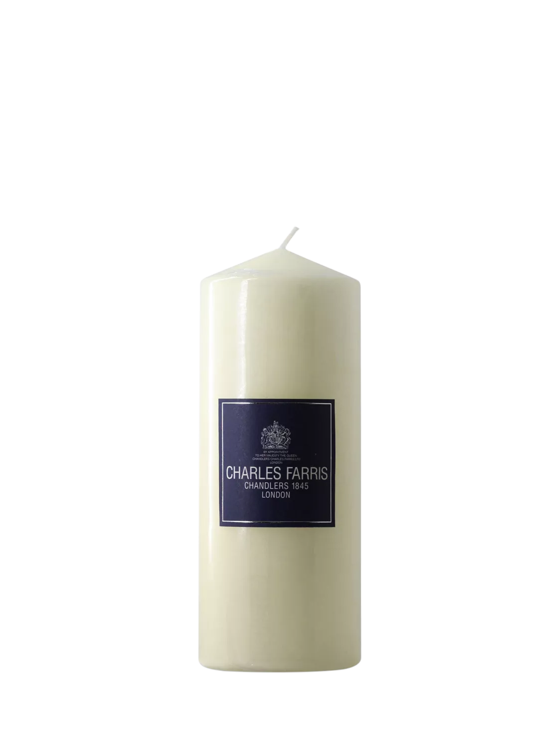 Perfectly blended to create a slow, even burn, this pillar candle from Charles Farris is ideal for lanterns, weddings and creating a sophisticated mood.