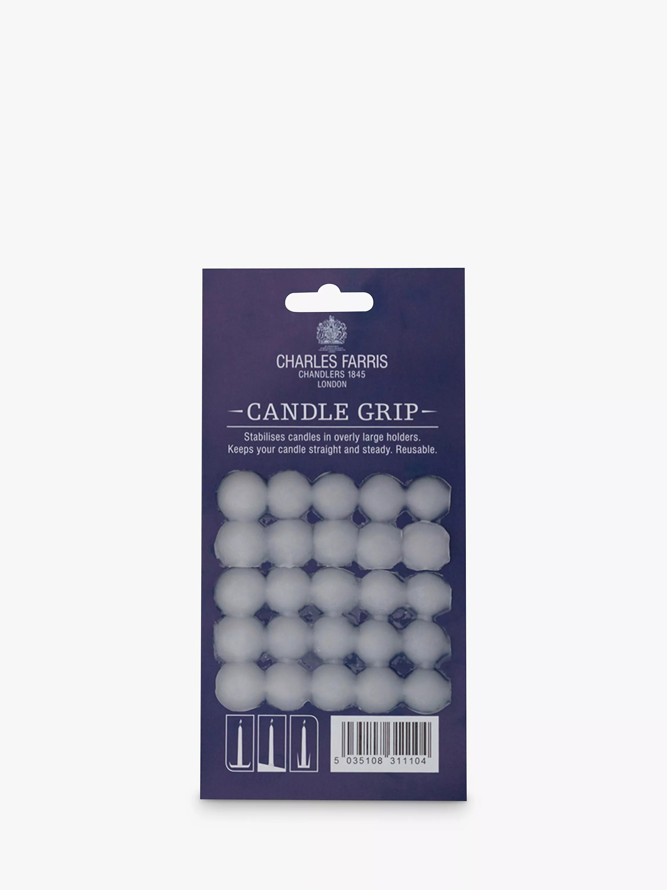 These wax candle grips in a pack of 25 are mouldable wax tabs, ideal for securing dinner candles in irregular sized candlesticks.