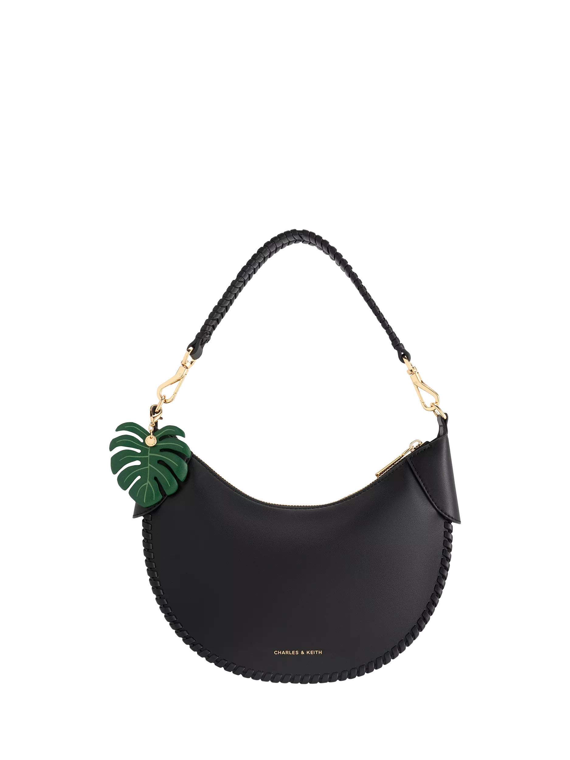 With a sleek curved silhouette, this Blume hobo bag from CHARLES & KEITH is an elevated everyday bag. It features a braided handle, which you can switch out with a longer strap. Stitch-trim edges and a lush green leaf charm make this bag a subtle statement piece.