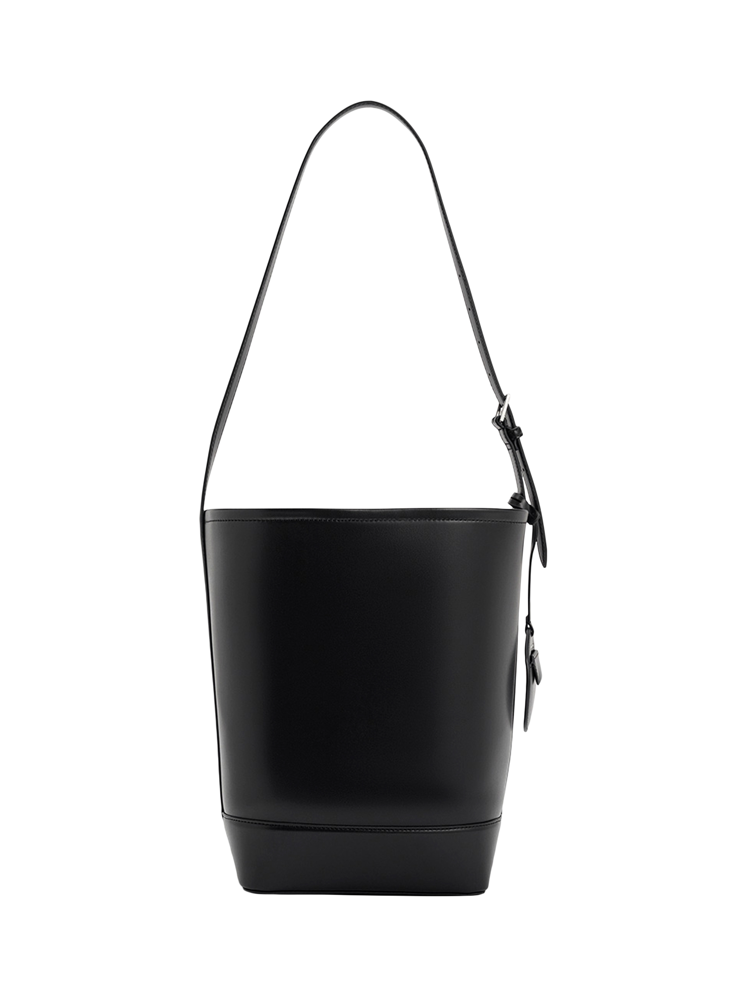 Featuring a classic, minimalist bucket construction, this Enola bag is a sophisticated everyday bag. Elegant in its simplicity, this chic carrier in versatile inky black is a functional piece that has a roomy interior and an adjustable strap for carryiing comfort. It comes with a detachable charm that can double as a keychain.