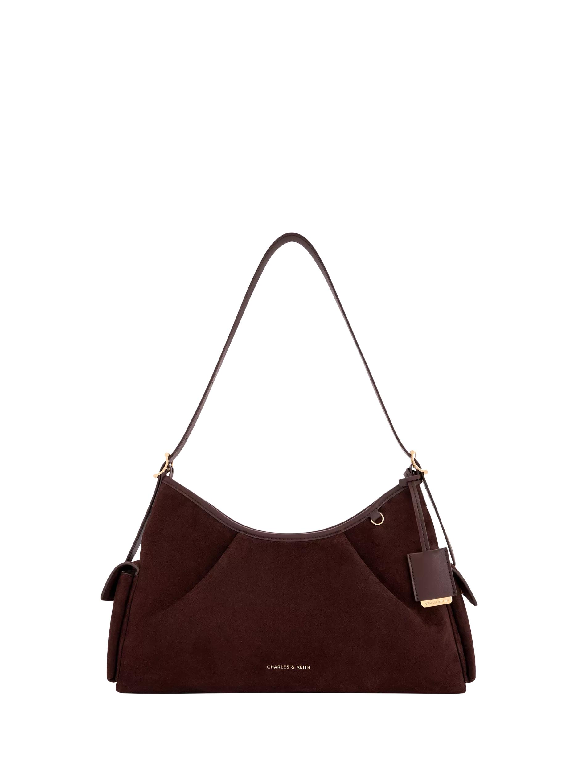This Khai shoulder bag by CHARLES & KEITH is made with recycled suede and features side pockets and a softly structured body. Pair it with slouchy blazers and your favourite jeans for a look that is both considered and effortless.