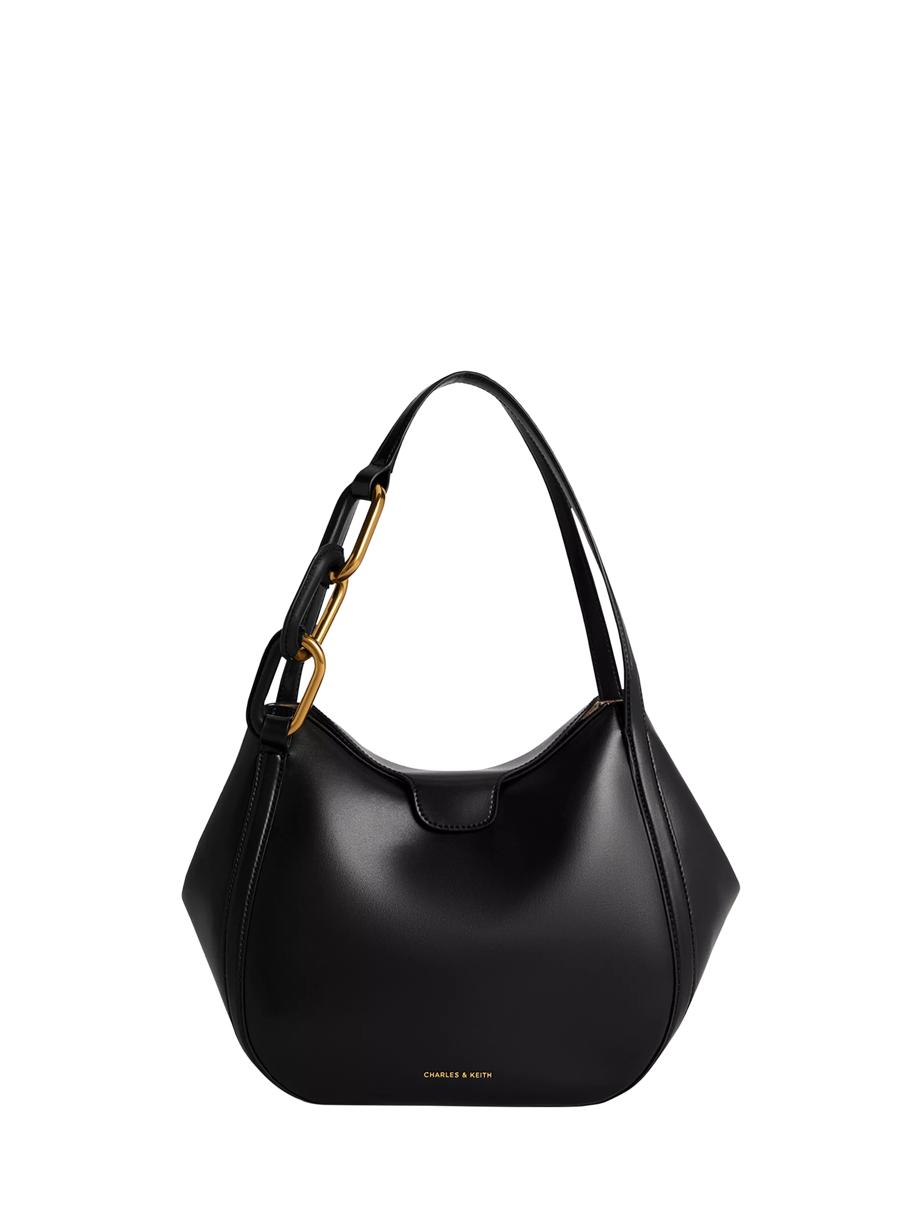 With the roomy interior of a classic tote, this Kora bag by CHARLES & KEITH is essentially two bags in one. Featuring a fold-over closure, which is secured with a magnetic clasp, this chic carrier comes with side flaps that can be tucked in or let out, so you can change it silhouette, as well as its carrying capacity, in an instant. In other words, this piece can be transformed to suit your needs and preferences. A bold and eye-catching chain-link detail on the handle makes it stand out even more.