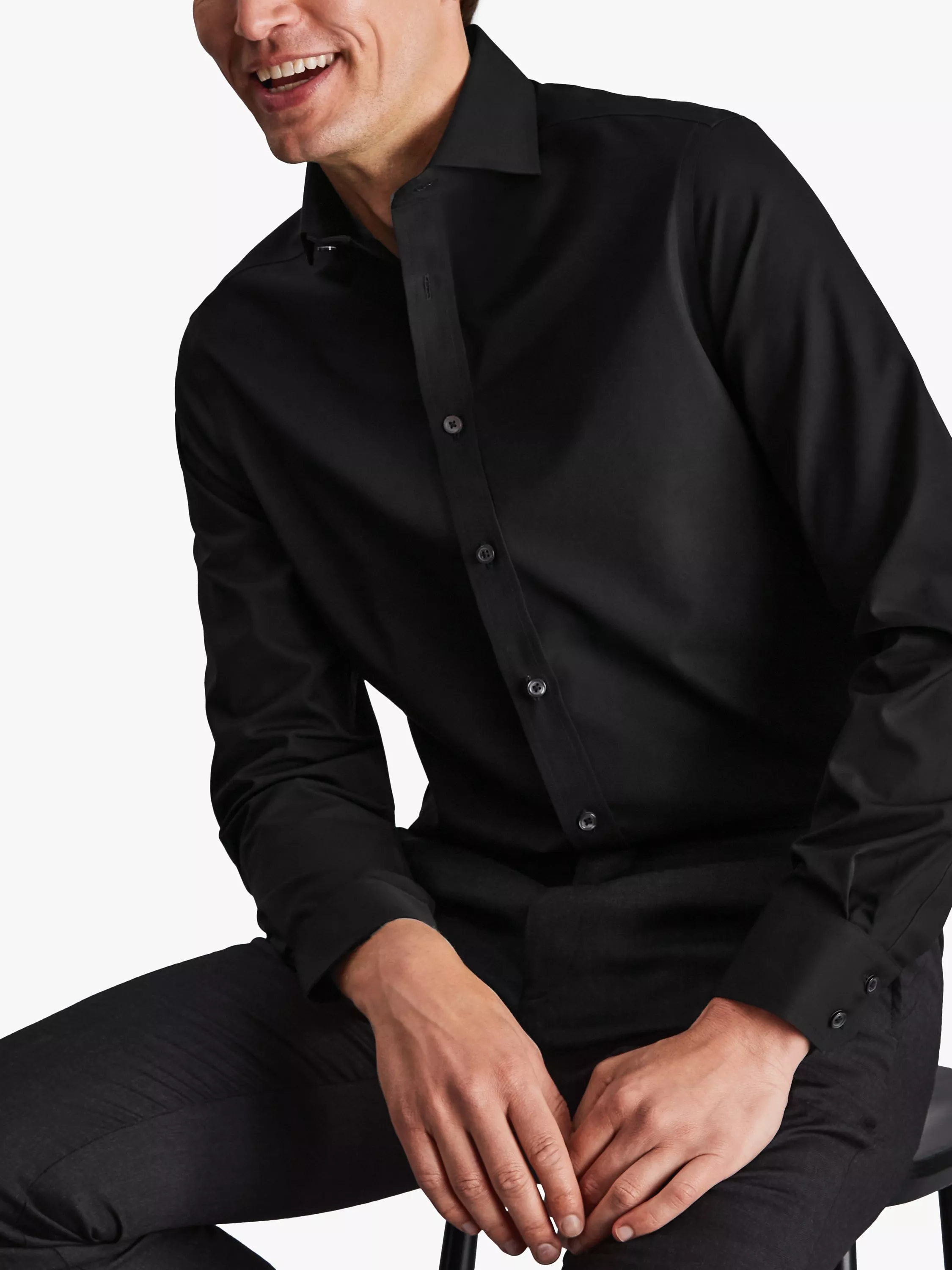 Perfect for the modern gent who is always on the go, this slim-fit shirt by Charles Tyrwhitt does away with the need to get out that ironing board with its clever non-iron construction. Featuring a split yoke for added movement, this shirt is framed by a clean cutaway collar and comes with Complimentary brass collar stays.
