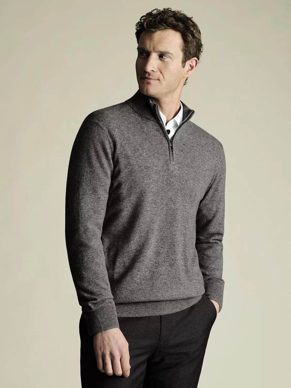 Charles TyrwhittHalf Zip Cashmere Jumper, Grey