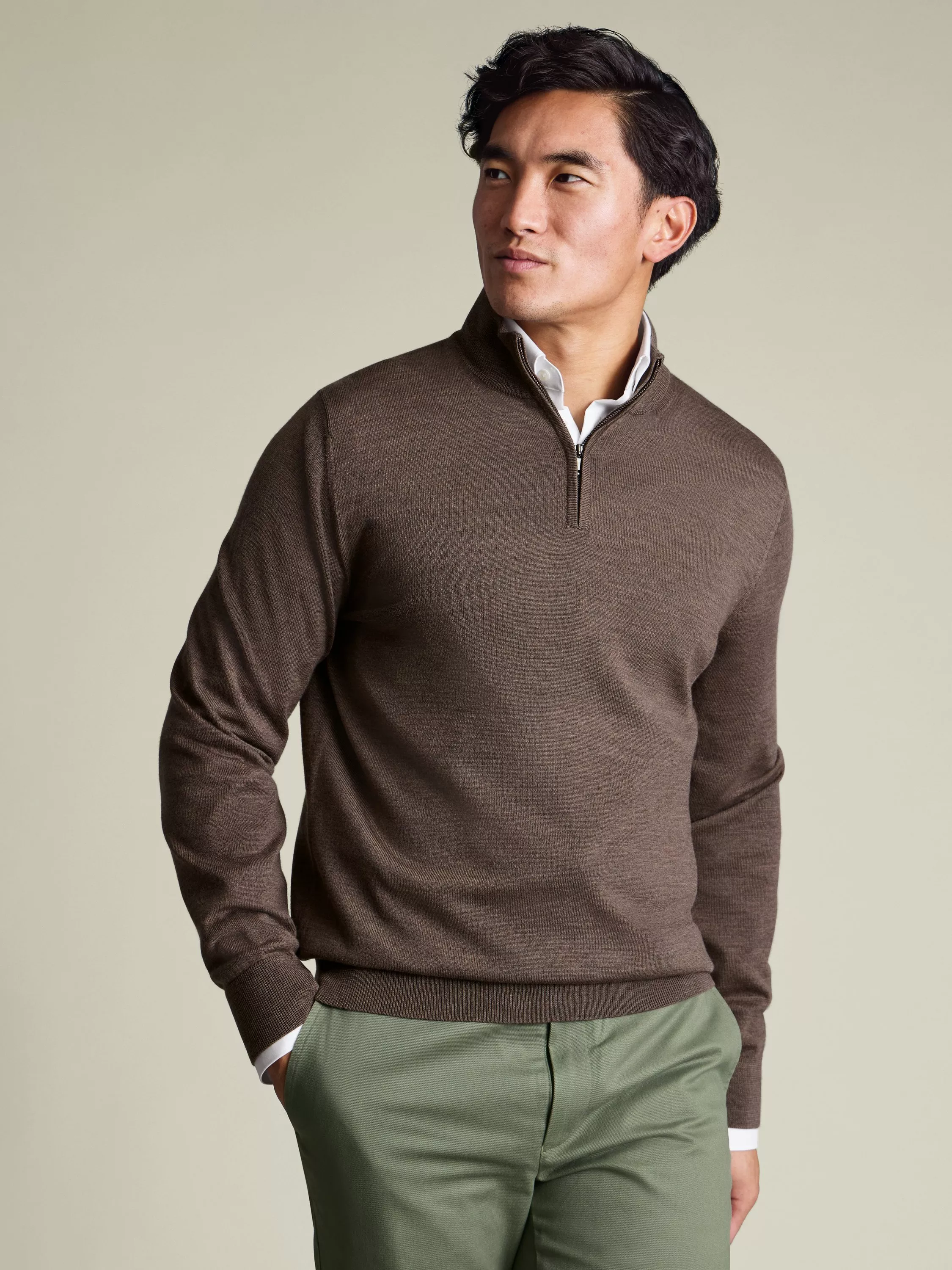 Charles TyrwhittHalf Zip Merino Wool Jumper, Mocha