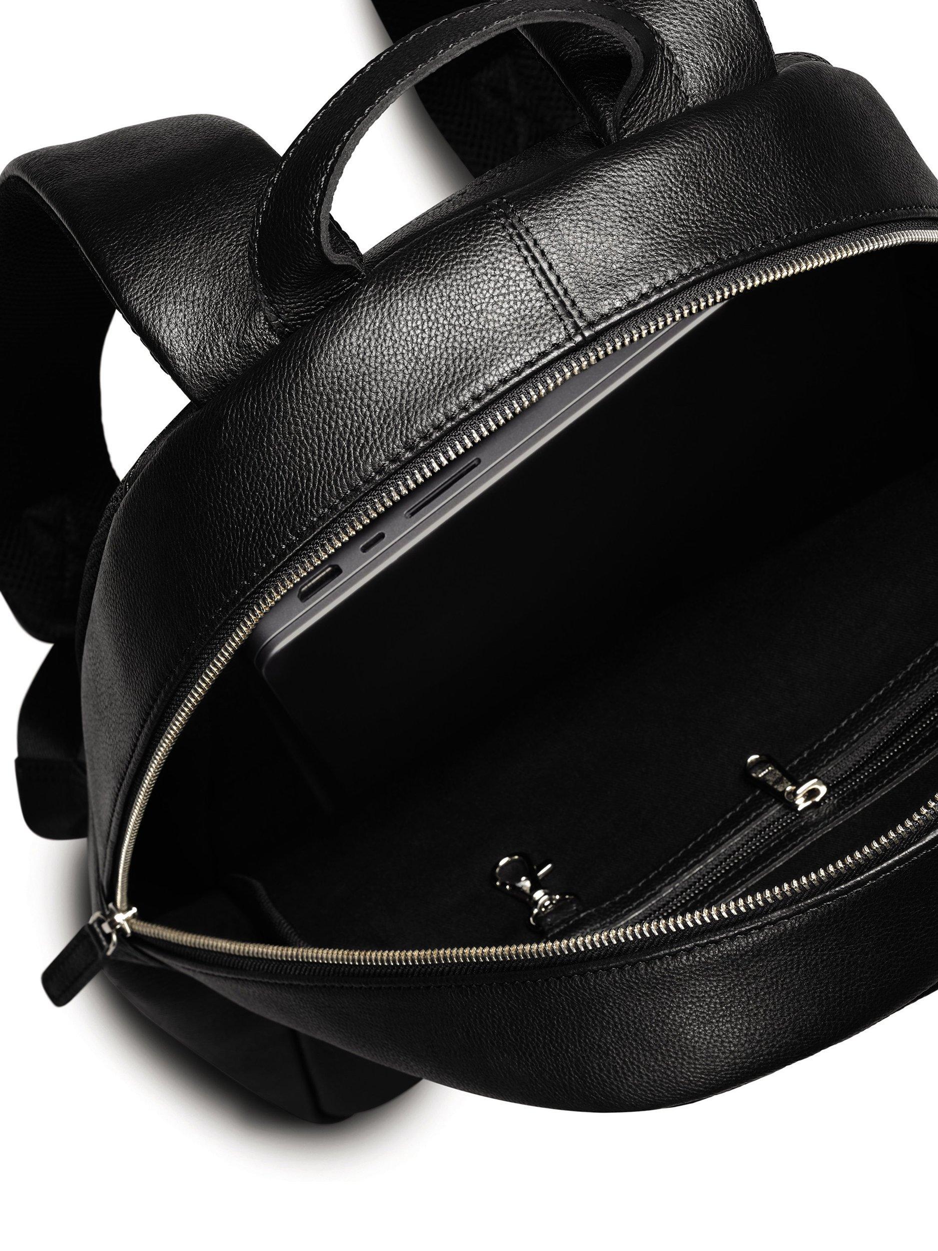With stitched edges, embossed branding and clever features to make your everyday life simpler. The premium leather of this backpack offers superior suppleness and develops a unique patina and texture the more you use it, making the piece unmistakably yours.