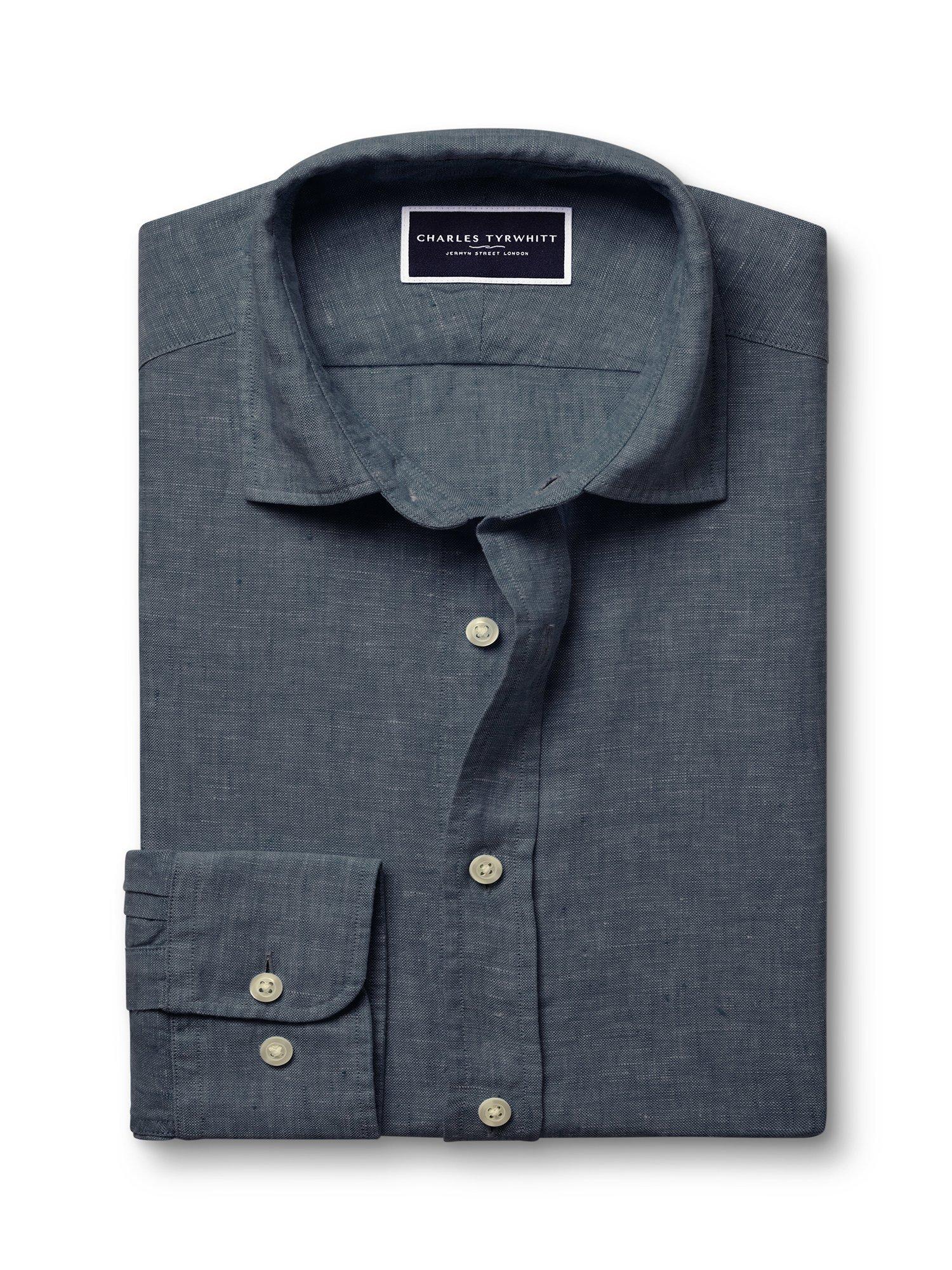 Charles TyrwhittLinen Slim Fit Shirt, Airforce Blue