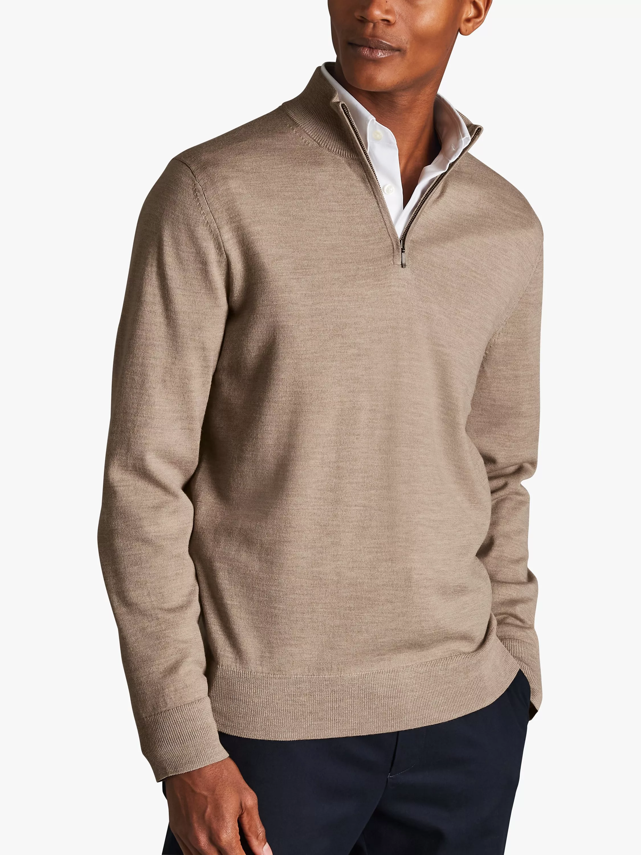 Zipping up snug, this jumper from Charles Tyrwhitt indulges in the comforting warmth of wool. Garment-washed for a super-soft finish, this merino knit features ribbed detailing at the cuff and hem to help lock in warmth - just what you need for the layering season ahead.