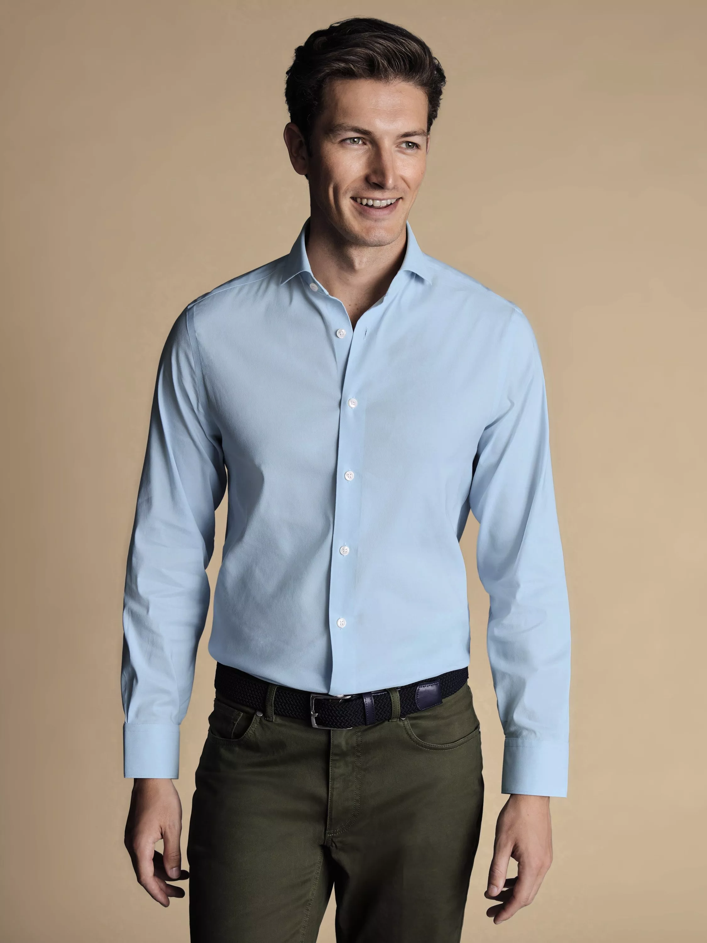 For comfortable wear that will keep you looking fresh, this cotton shirt from Charles Tyrwhitt is muted in design and is cut to a slim fit for elevated gentlemanly appeal.