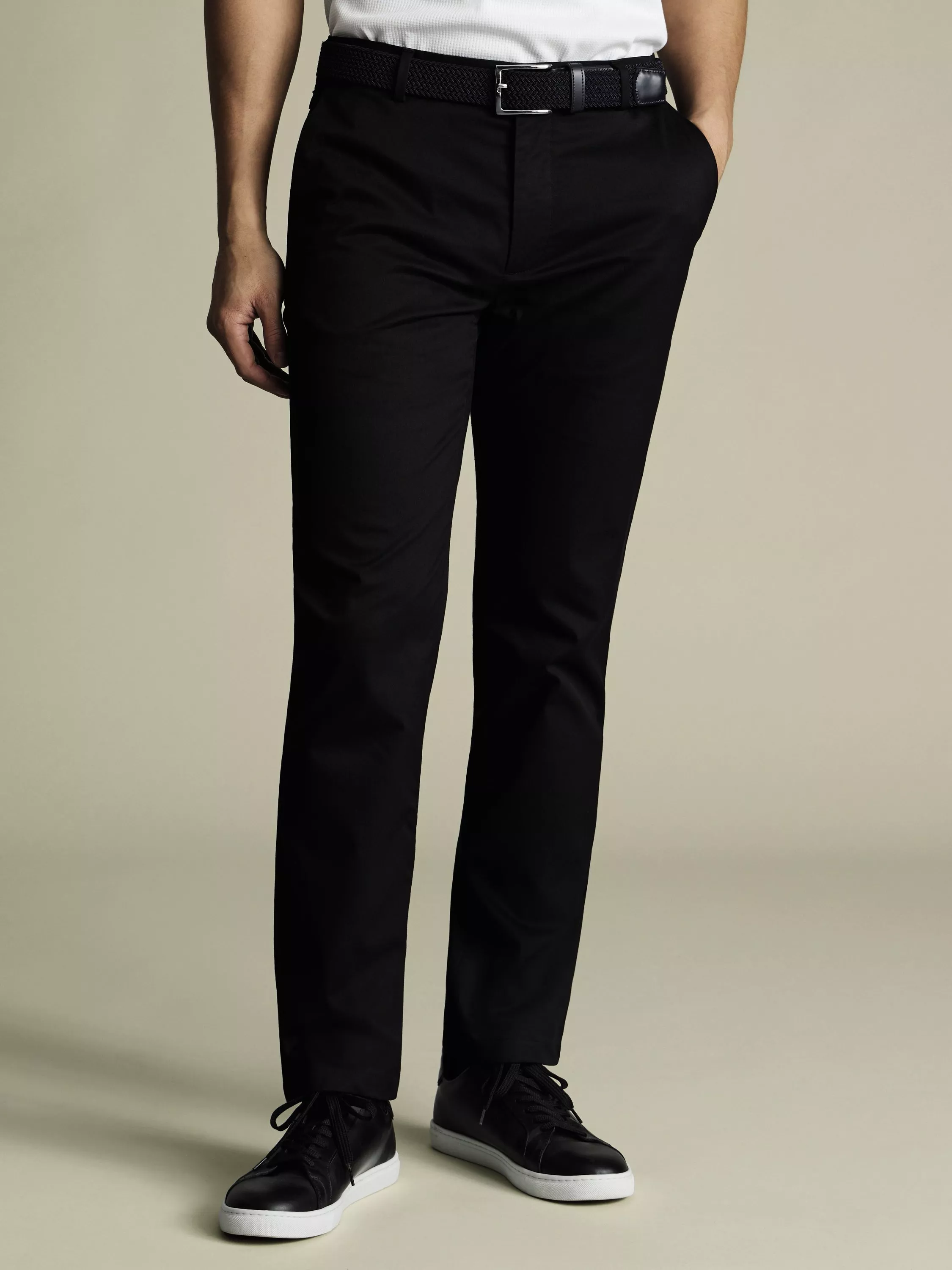 Charles Tyrwhitt's Performance chinos combine an innovative cotton-blend fabric with a timeless smart-casual profile. The stretch-friendly construction also ensures ease of wear and long-lasting comfort.