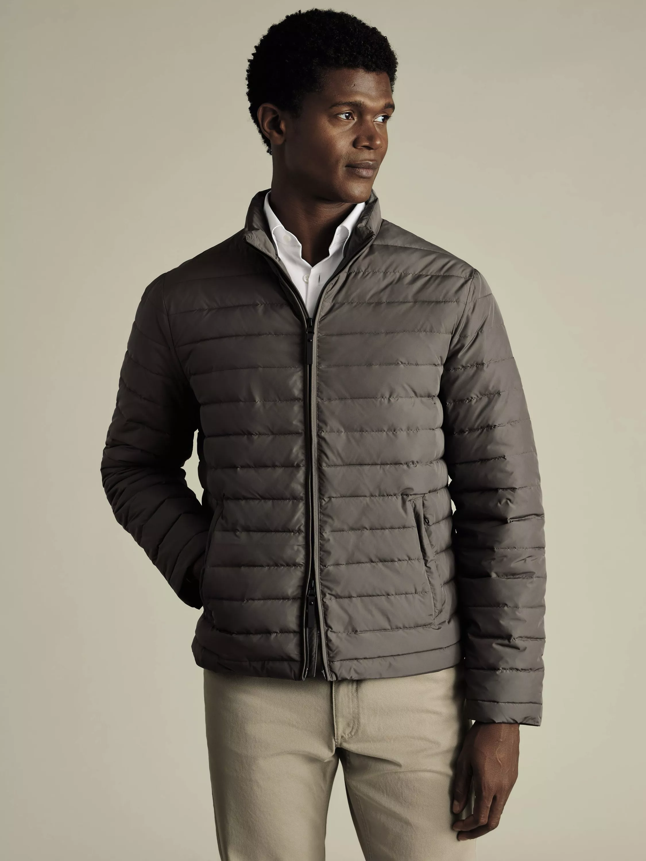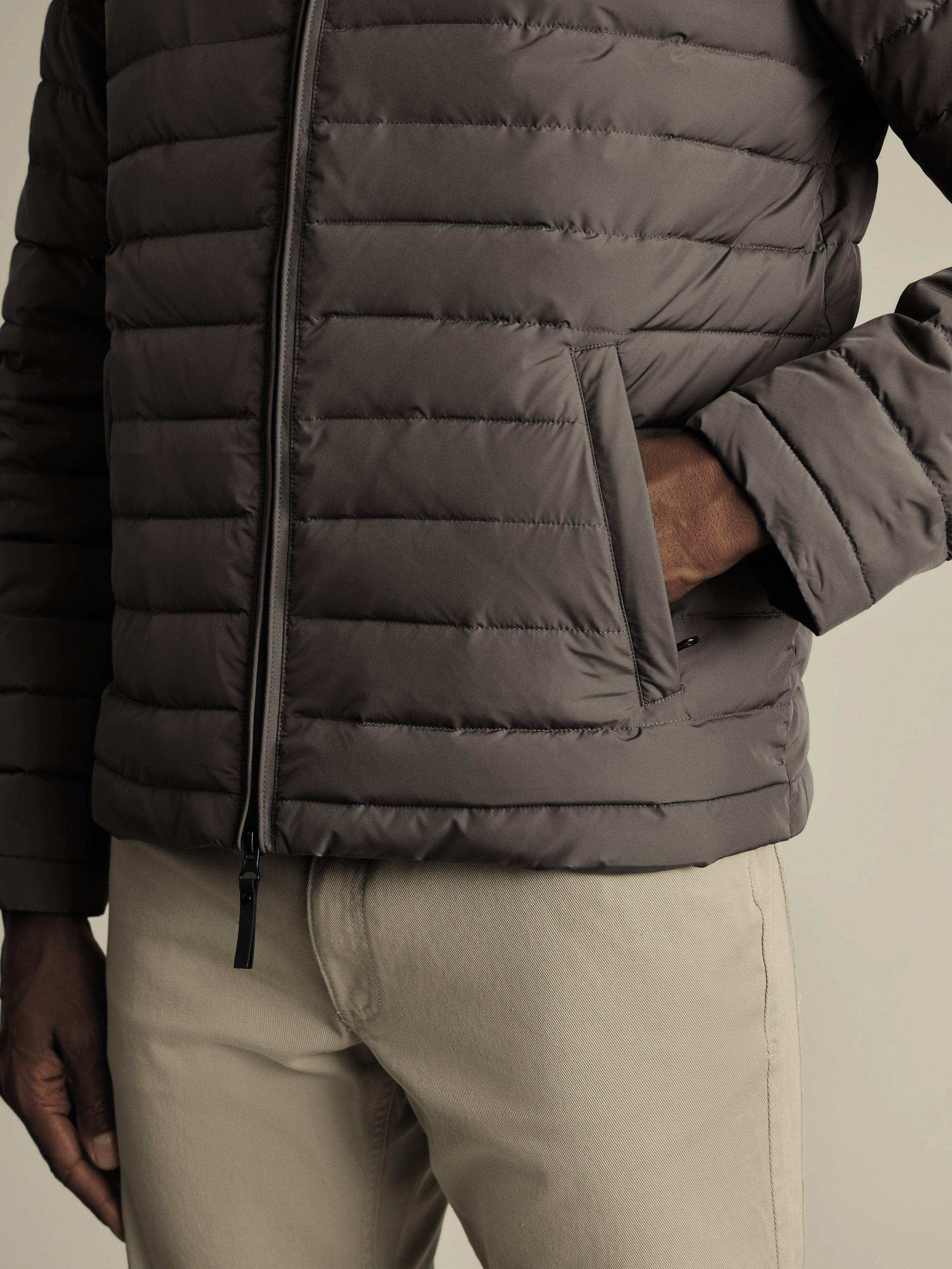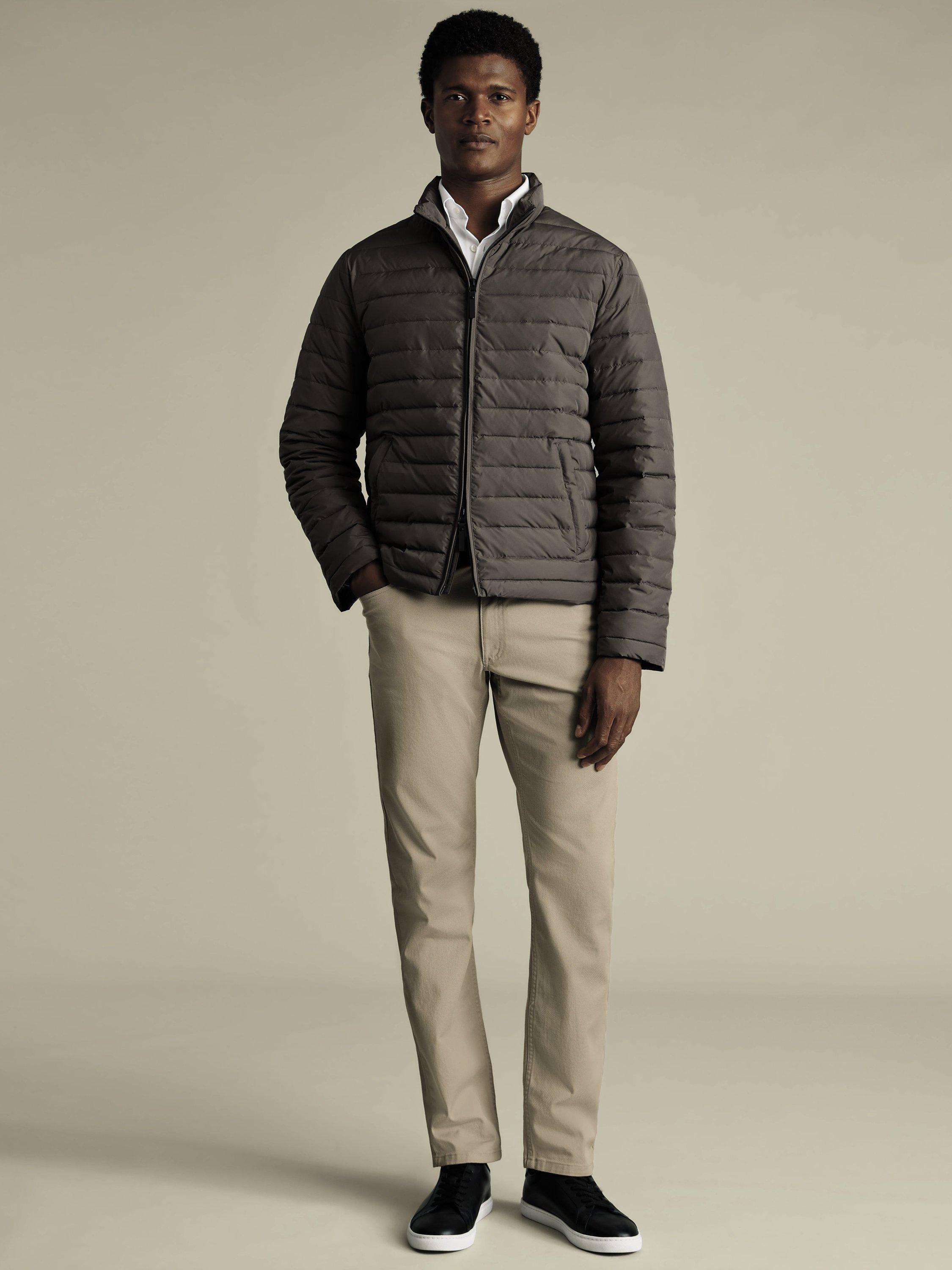 Forget about unexpected showers ruining your plans, this latest jacket from Charles Tyrwhitt has your back with its water-resistant finish. The lightweight recycled wadding provides warmth without bulk, allowing you to explore the countryside or city streets without feeling weighed down. They've added a collar stand feature for extra insulation during the colder seasons. Plus, the convenient double-ended zipper makes layering hassle-free while out and about.