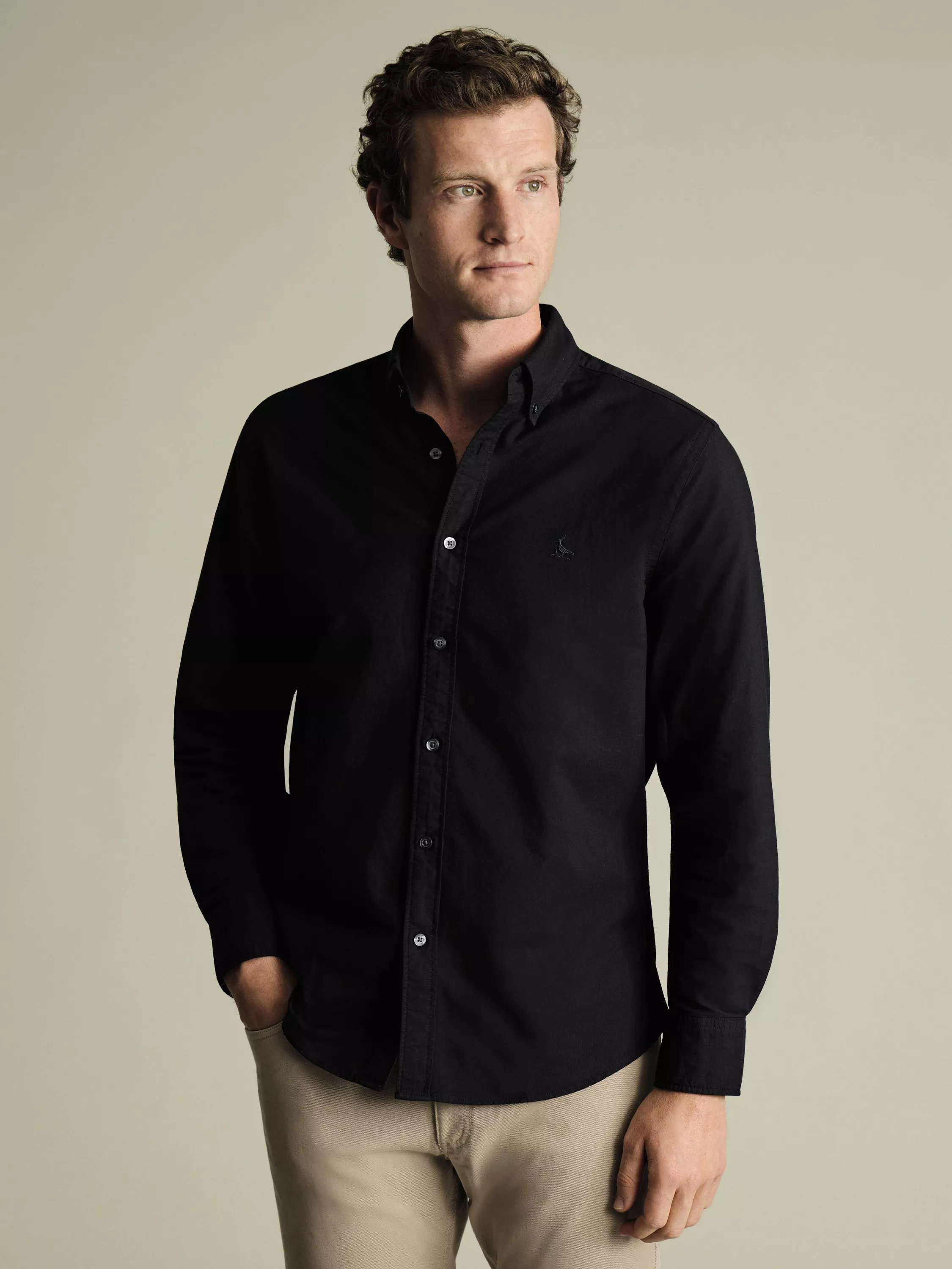 This pure cotton shirt benefits from natural stretch, offering both flexibility and ease of wear. Casual touches like the button-down collar and subtle chest embroidery also give this design a more laid-back feel.