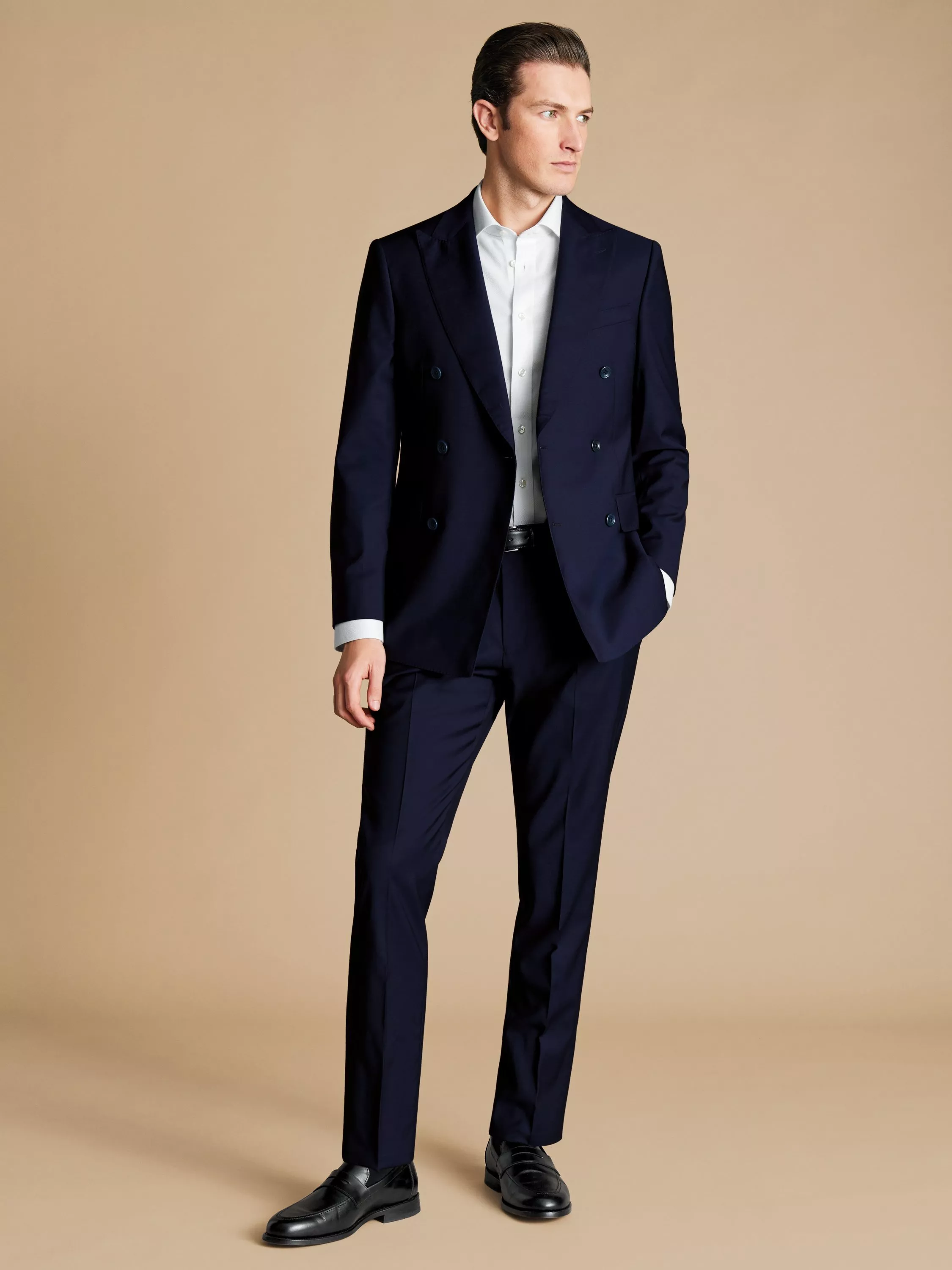 This double-breasted blazer is cut from premium wool and benefits from natural stretch, as well as crease-resistant properties. It is also finished with AMF stitching, highlighting Charles Tyrwhitt's attention to detail.