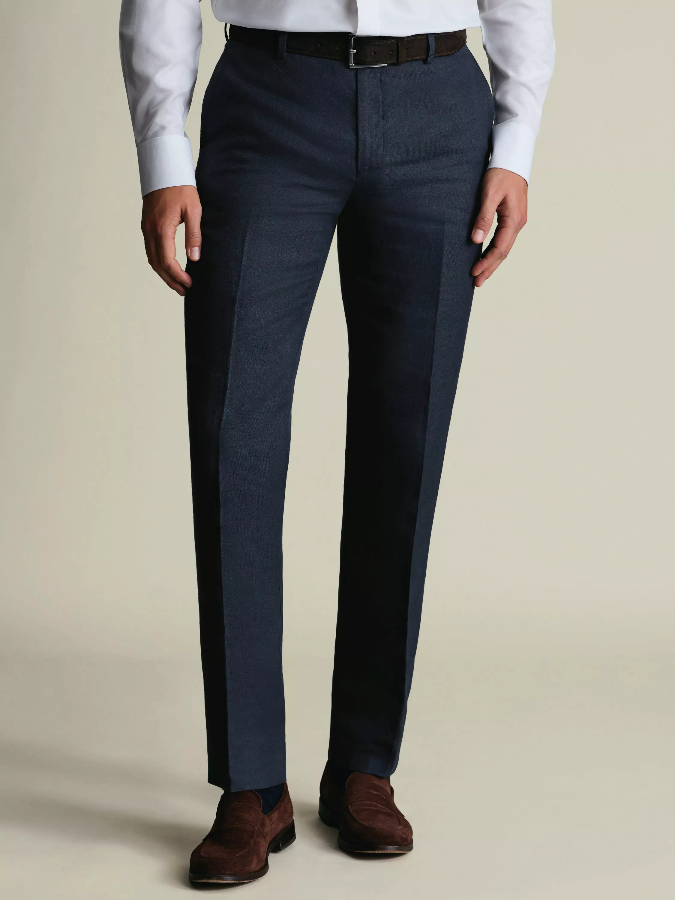 Move with confidence and comfort in these slim tailored linen trousers. Designed to keep you sharp and cool, they suit every occasion where you want to stand out while staying at ease all day long.