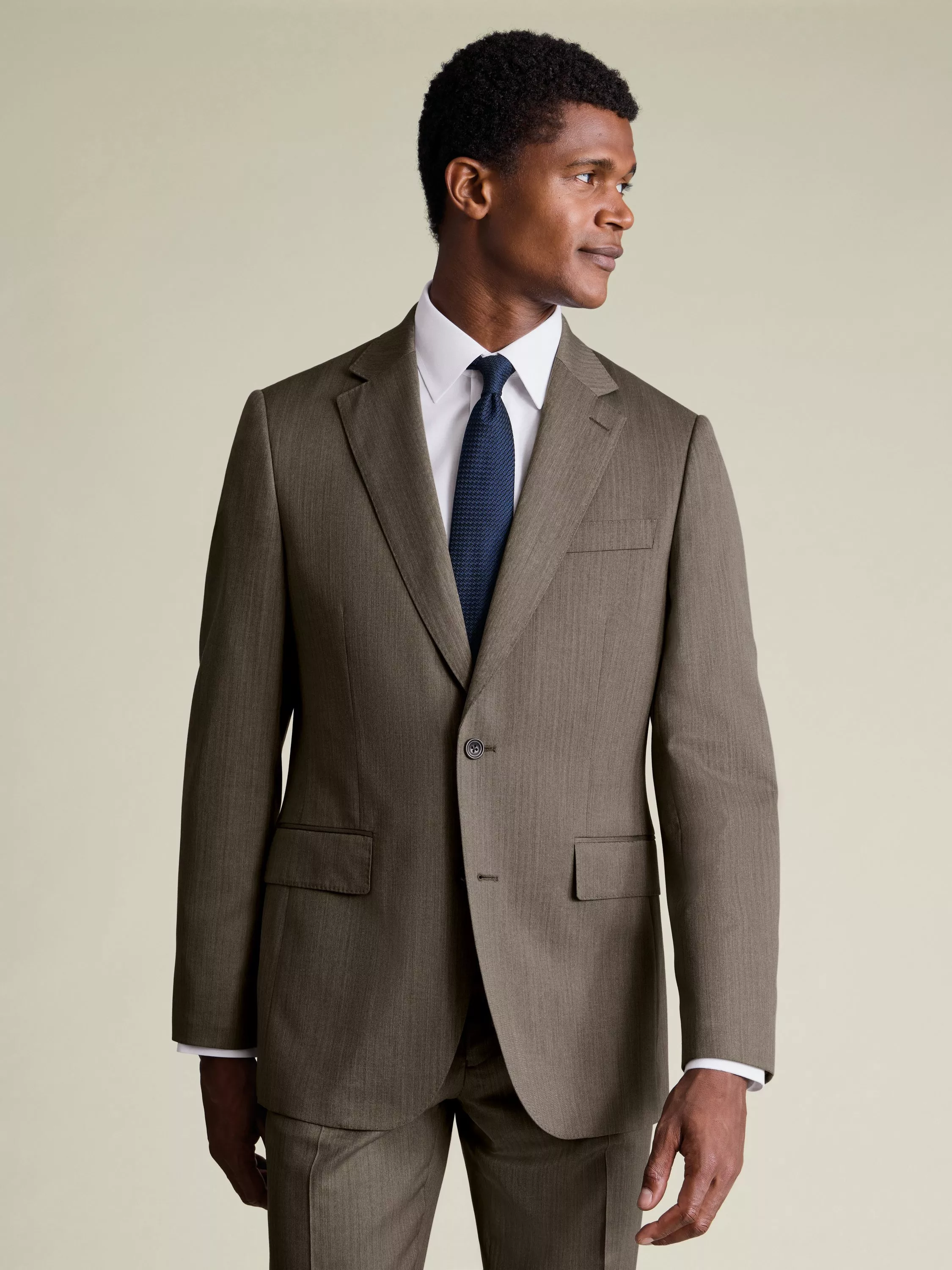 This single-breasted blazer is cut from premium wool, boasting natural stretch and crease-resistant properties. It also has a herringbone structure, as well as Charles Tyrwhitt's exclusive lapwing lining.