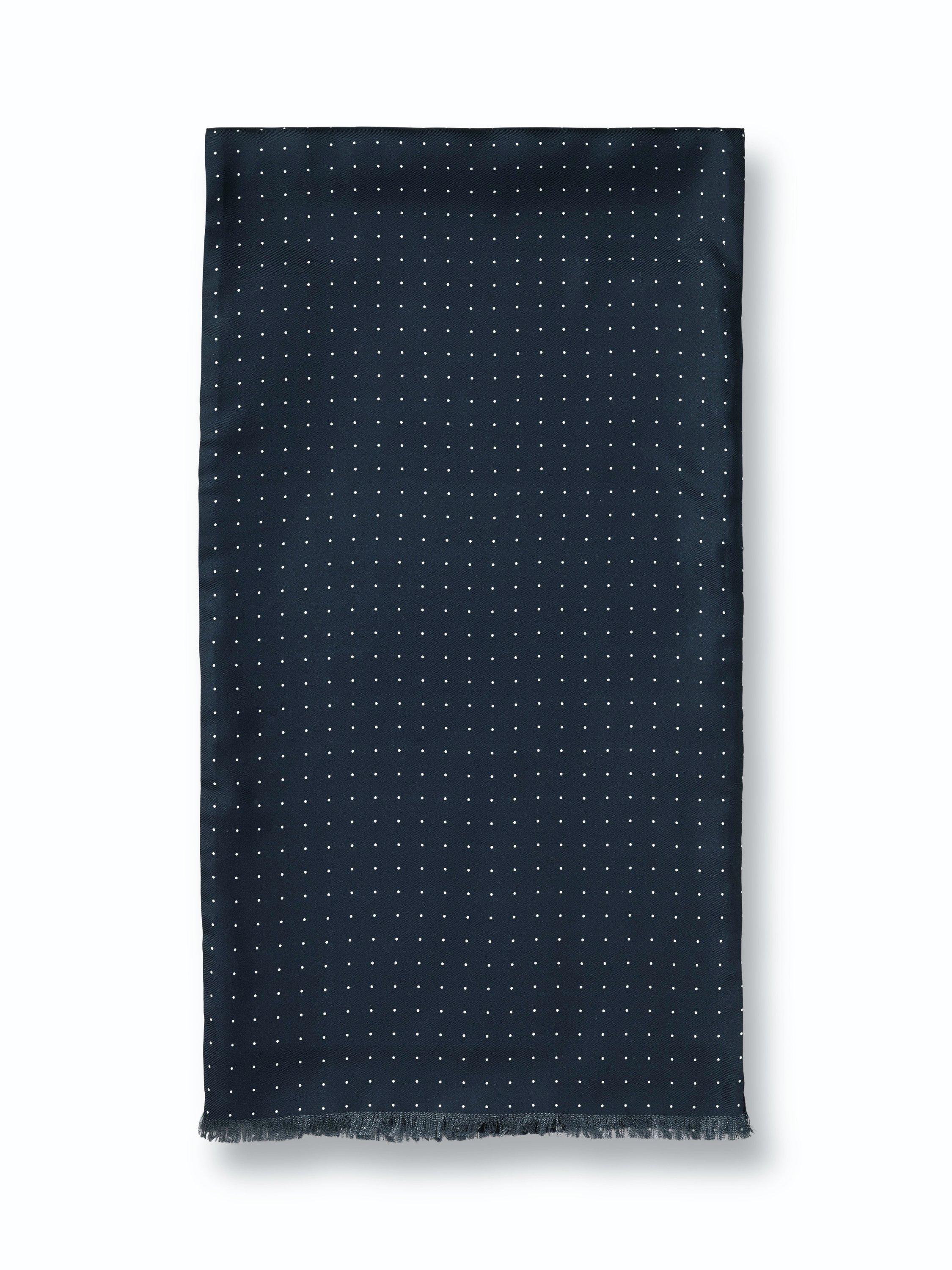 With its distinctive lustre and supple drape, a silk scarf is a luxurious finishing touch to any formal outfit. This style combines silk with a lining of pure wool, which adds warmth while maintaining a refined, lightweight feel. The short ends have a classic raw edge for a textured finish. Wear this scarf draped, wrapped or knotted over a finely tailored suit or smart overcoat.