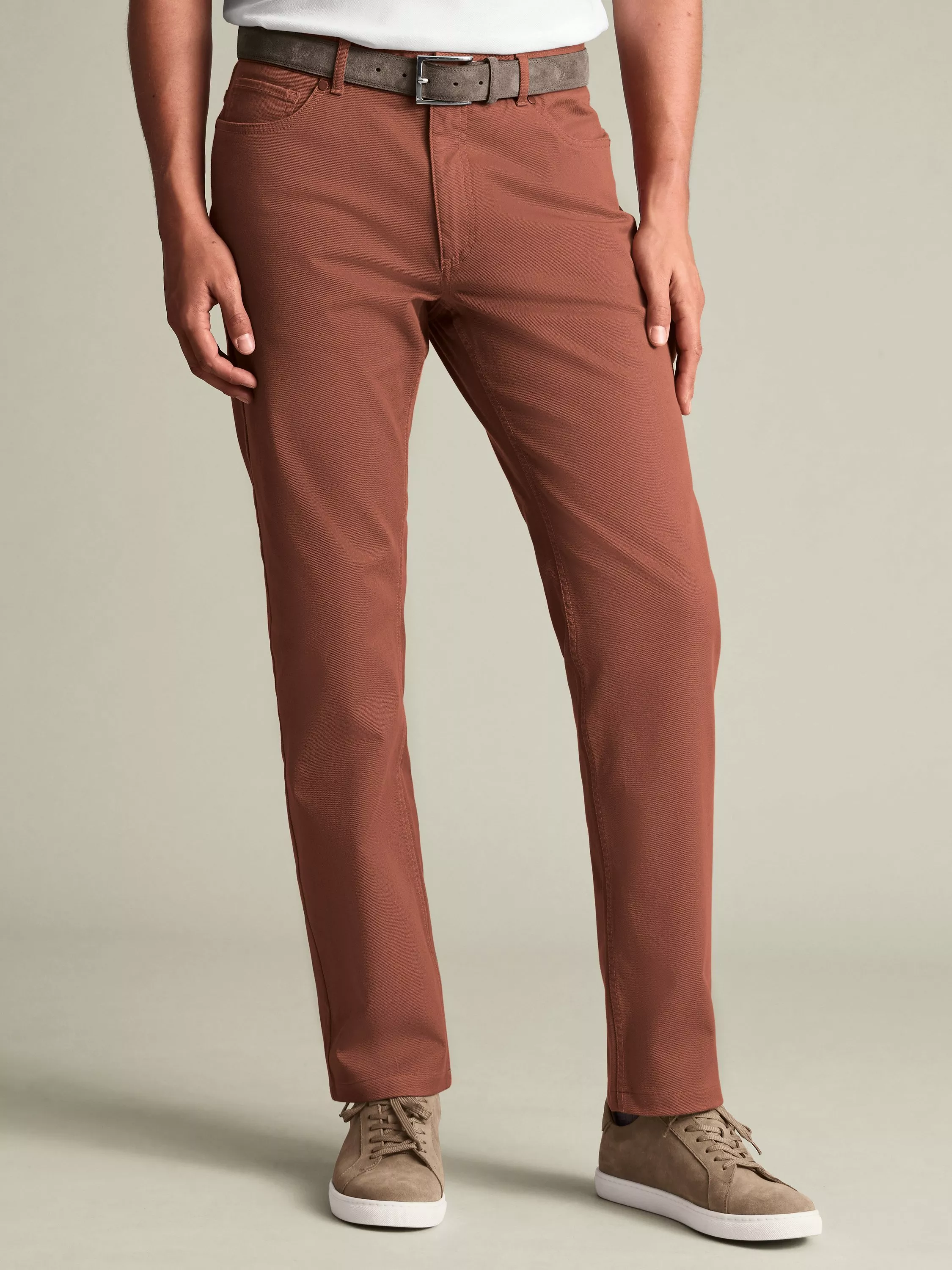 These five-pocket jeans from Charles Tyrwhitt are a smart spin on classic denim style. They're crafted from luxurious garment-dyed cotton twill, featuring a hint of stretch to allow for freedom of movement. The brushed finish results in a super-smooth appearance. The brand's slim-fit trousers have a straight leg that gently tapers at the ankle.