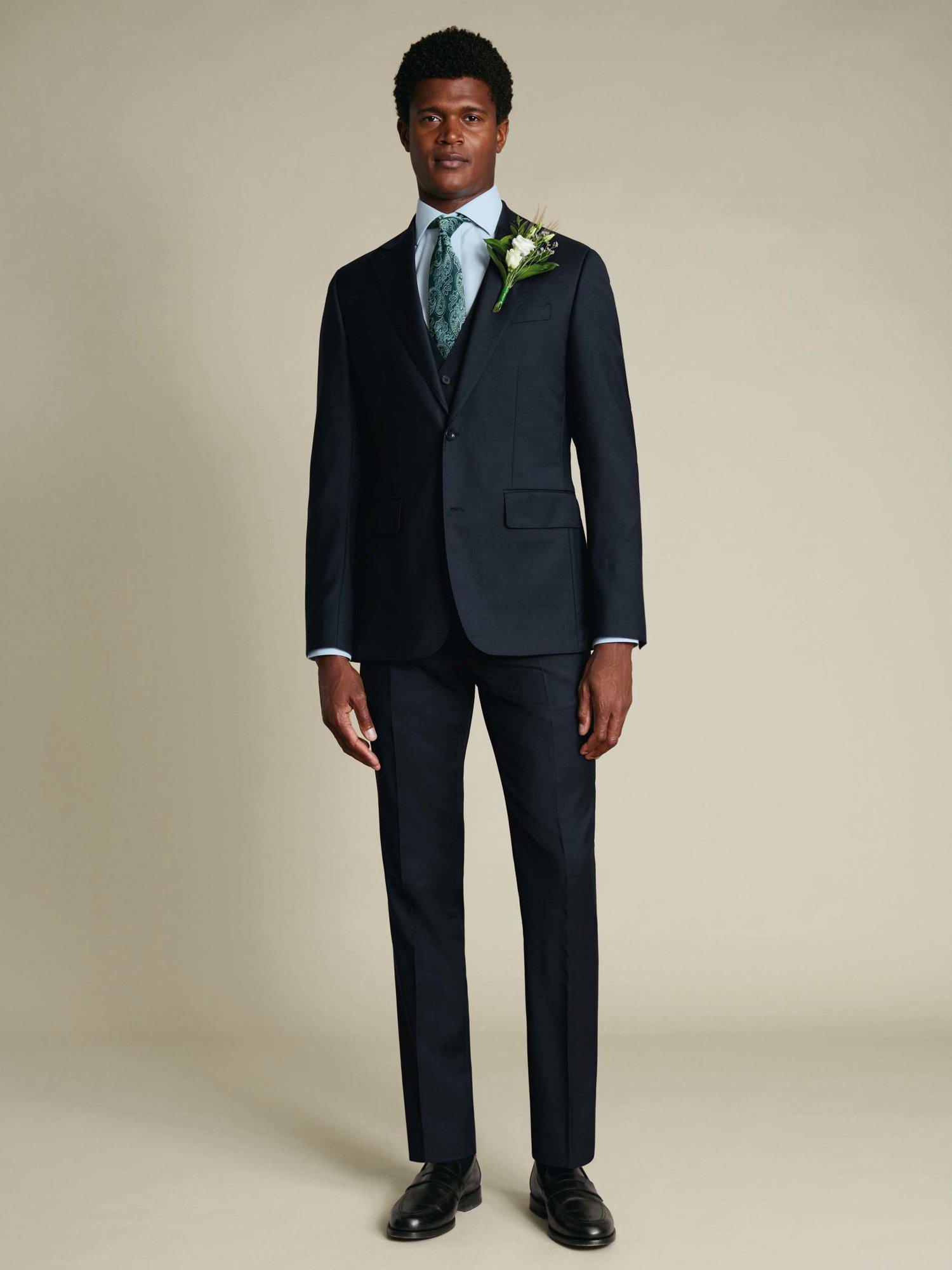 With its natural stretch and breathable fabric, this suit is designed for comfort as well as good looks. It's crafted from Woolmark-certified Super 100’s Merino wool, famed for its distinctive sheen and super-soft handfeel. Features like AMF stitching across the notch lapel and pocket flaps provide a refined finish to the jacket, while the flat-fronted trousers will always sit elegantly. Add a waistcoat for a dapper touch.