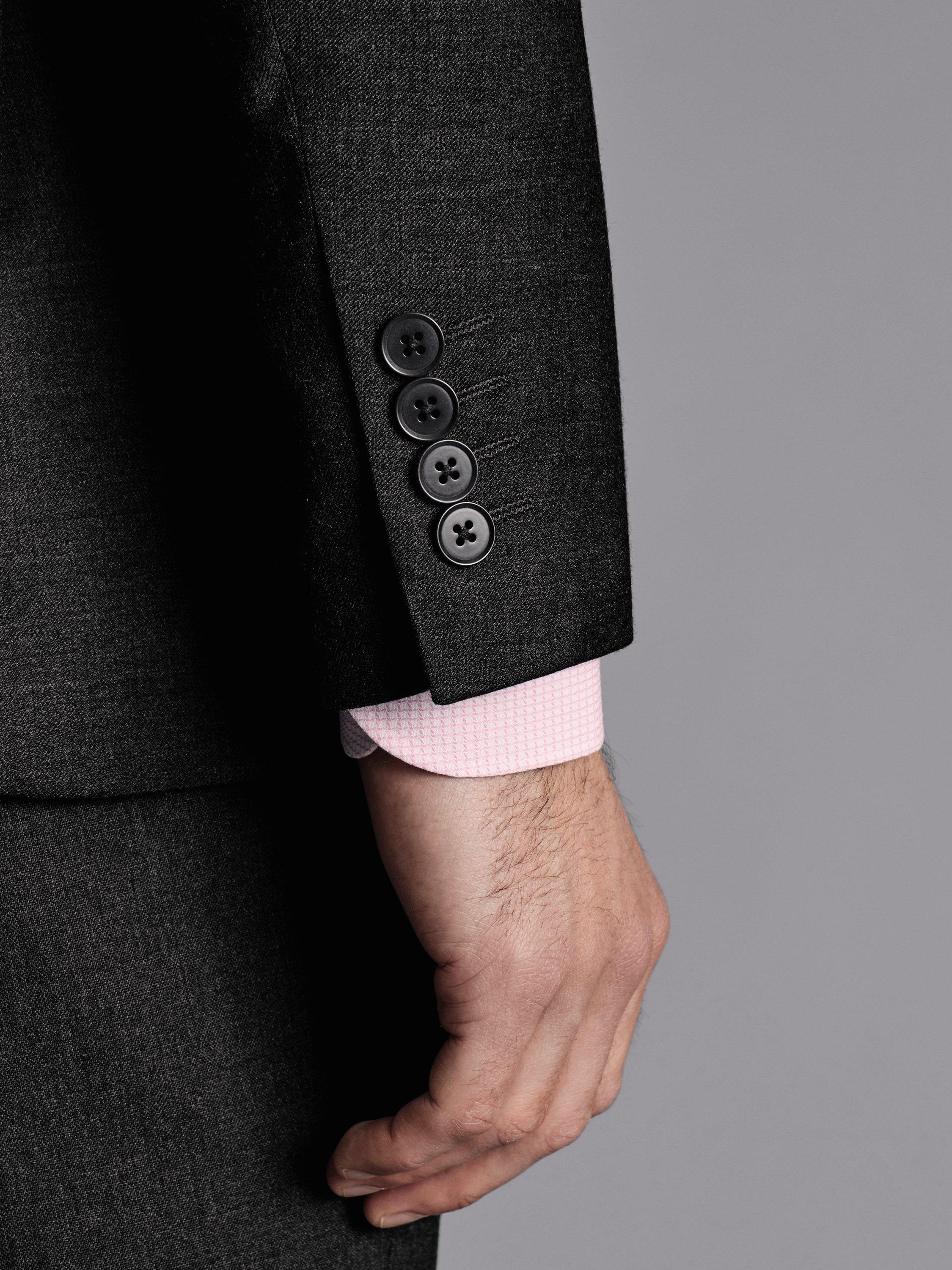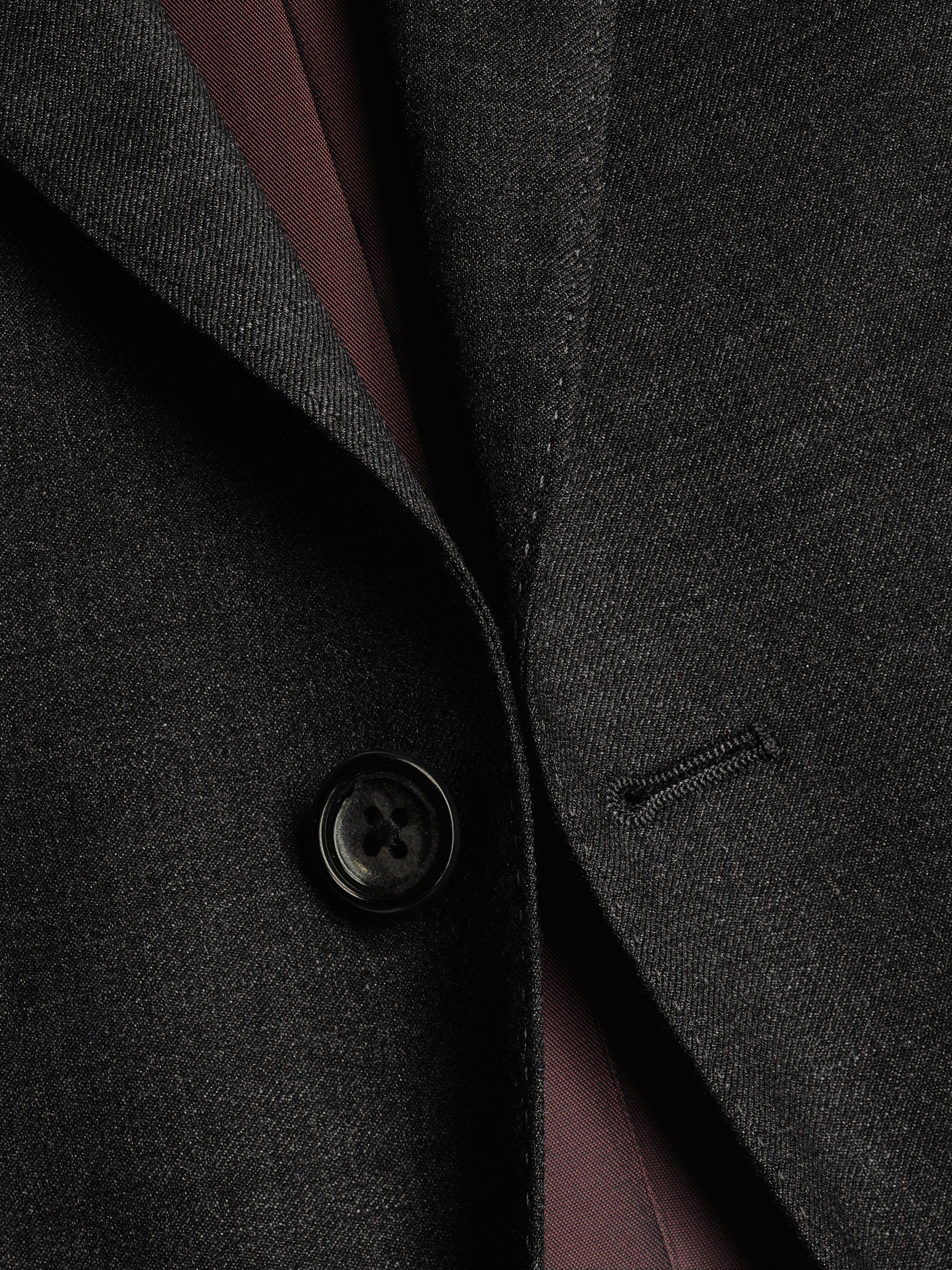 With its natural stretch and breathable fabric, this suit is designed for comfort as well as good looks. It's crafted from Woolmark-certified Super 100s Merino wool, famed for its distinctive sheen and super-soft handfeel. Choose from a selection of shades, including a new Royal Blue. This jacket will always sit smartly, thanks to its classic canvas chest piece construction. Neat AMF stitching across the notch lapels and external pocket flaps adds a clean finish. Meanwhile, the four buttons on the non-working cuffs are crafted from natural and sustainable materials.