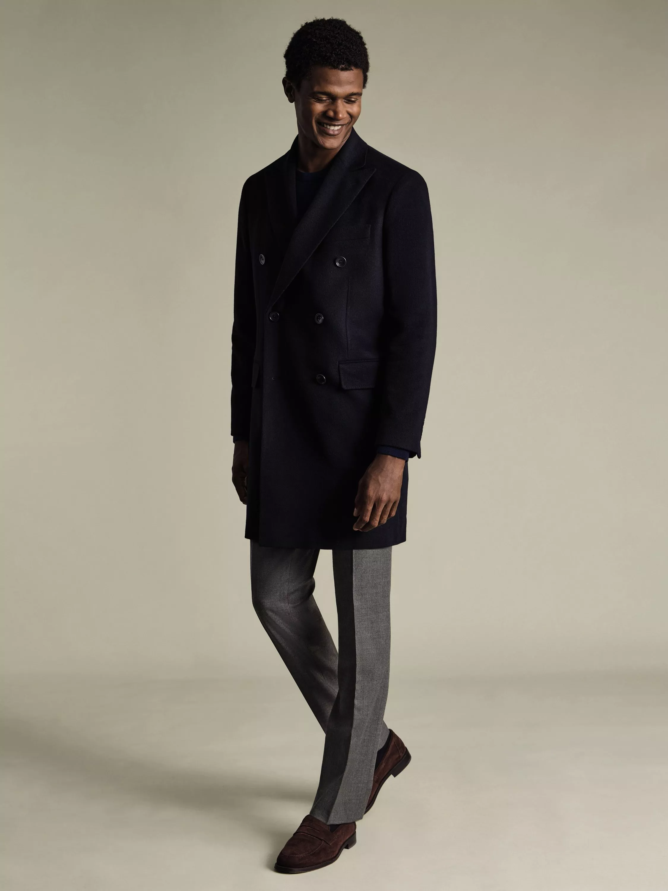Charles TyrwhittWool Double Breasted Overcoat, Navy