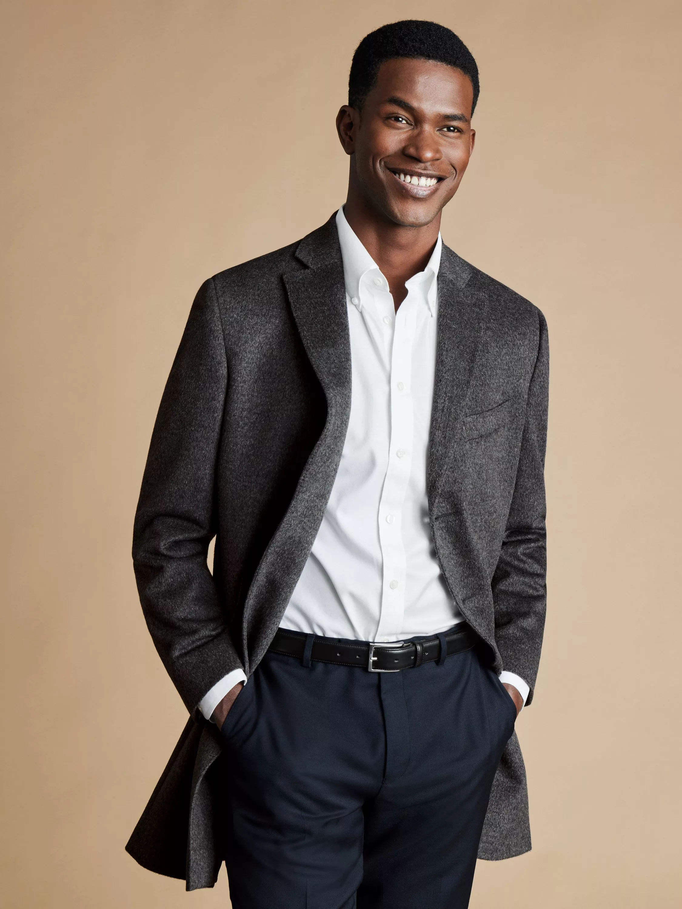 This Charles Tyrwhitt overcoat is a timeless outerwear design made from pure wool that is both warming and breathable. Finishing touches include smooth welt pockets and a back vent that allows for ease of movement.