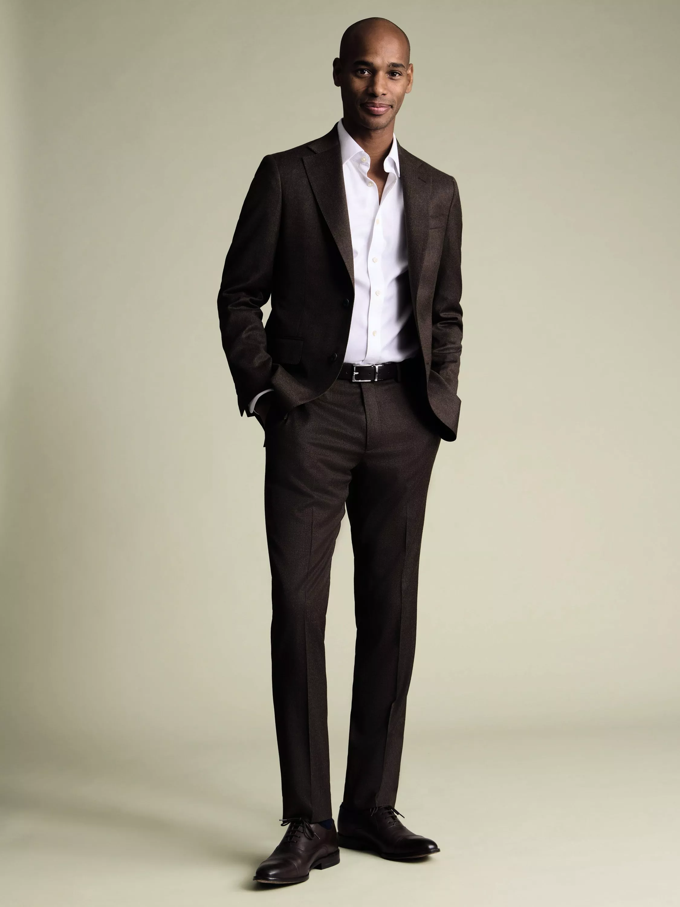 Cut to a classic single-breasted silhouette, this suit jacket is made from a wool-rich fabric infused with stretch so you can move around with ease. The jacket features a half canvas chest piece for a more well-defined fit. Inside, you'll spot Charles Tyrwhitt's exclusive lapwing lining. Team with the matching suit trousers to complete the look.