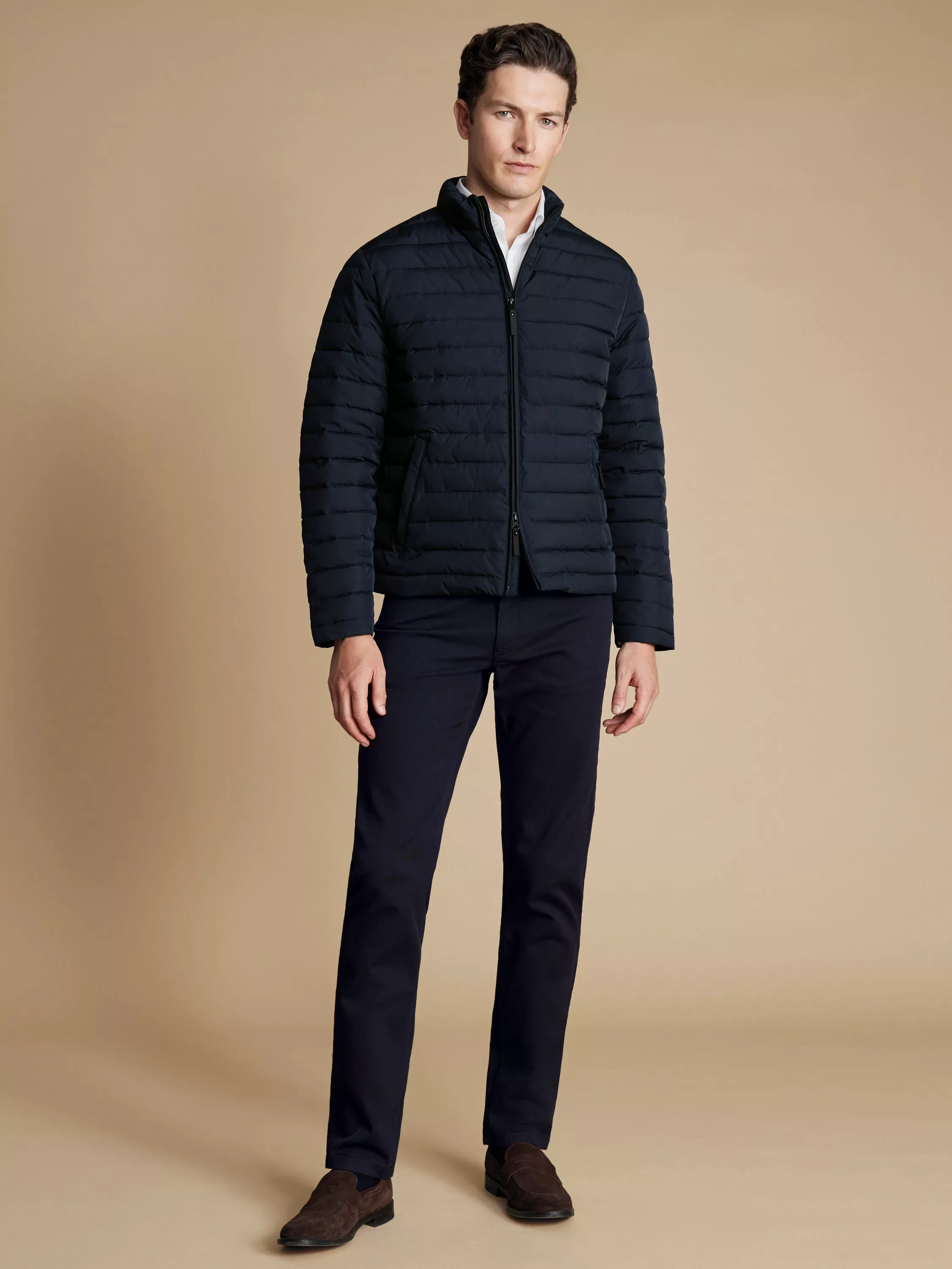 Charles Tyrwhitt has given this jacket a water-resistant finish to protect from unexpected showers, while lightweight wadding adds warmth without bulk. A two-way zip fastening is also another welcome practical detail.
