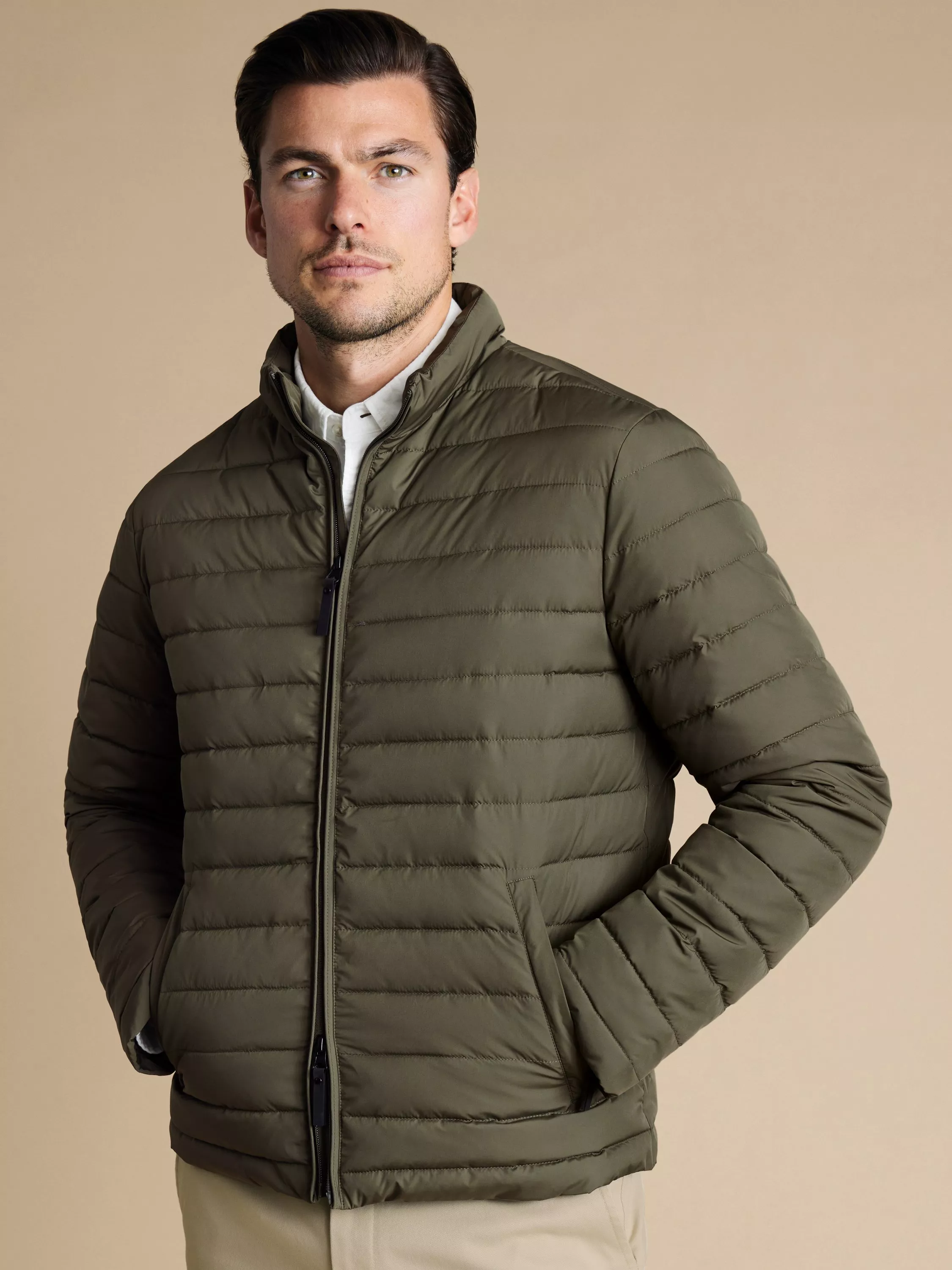 This jacket benefits most from a water-resistant finish that provides adequate protection in the event of a sudden downpour. Lightweight wadding also adds warmth without bulk, while a convenient zip-fastened front makes this piece ideal for transitional seasons.