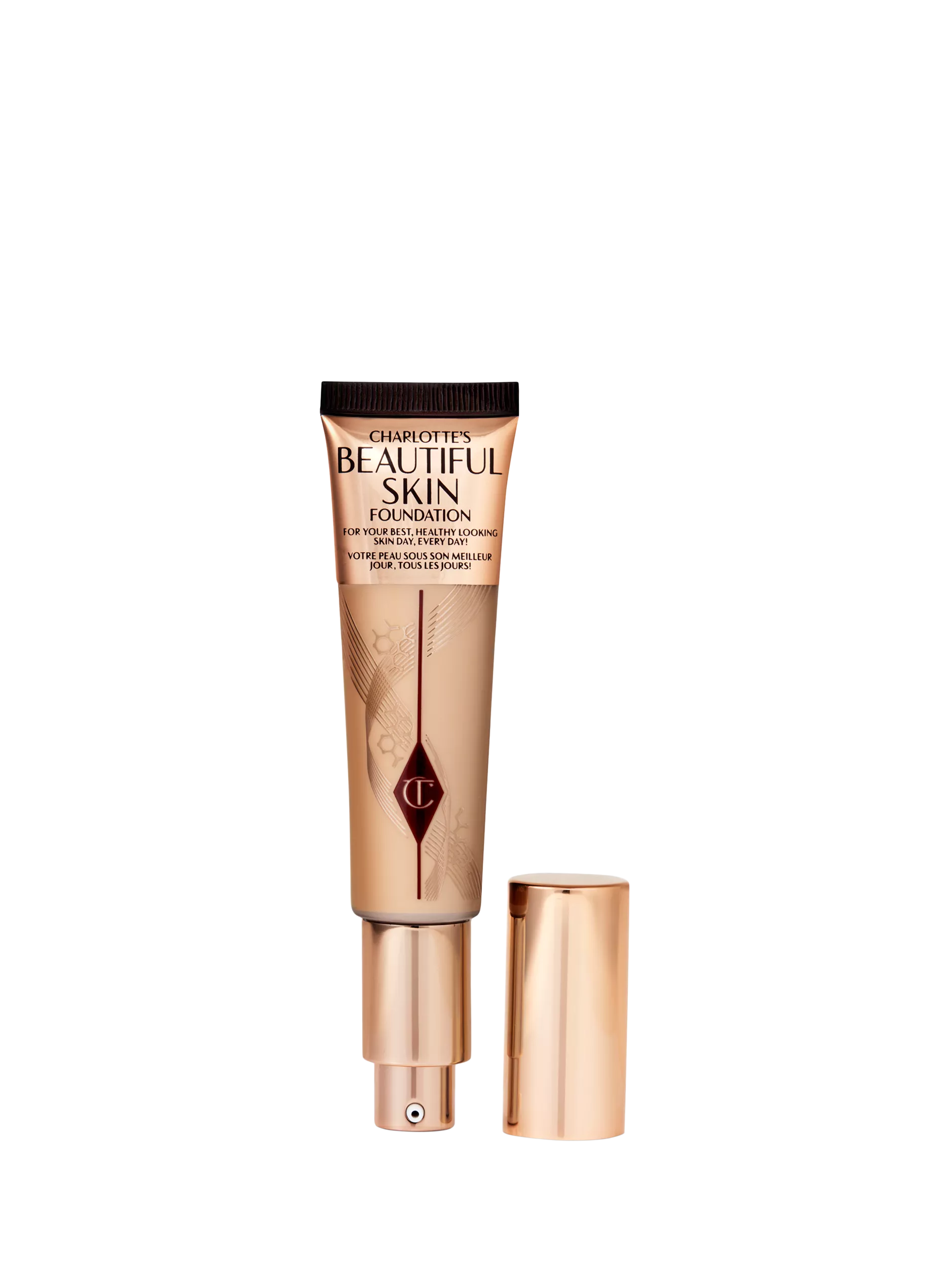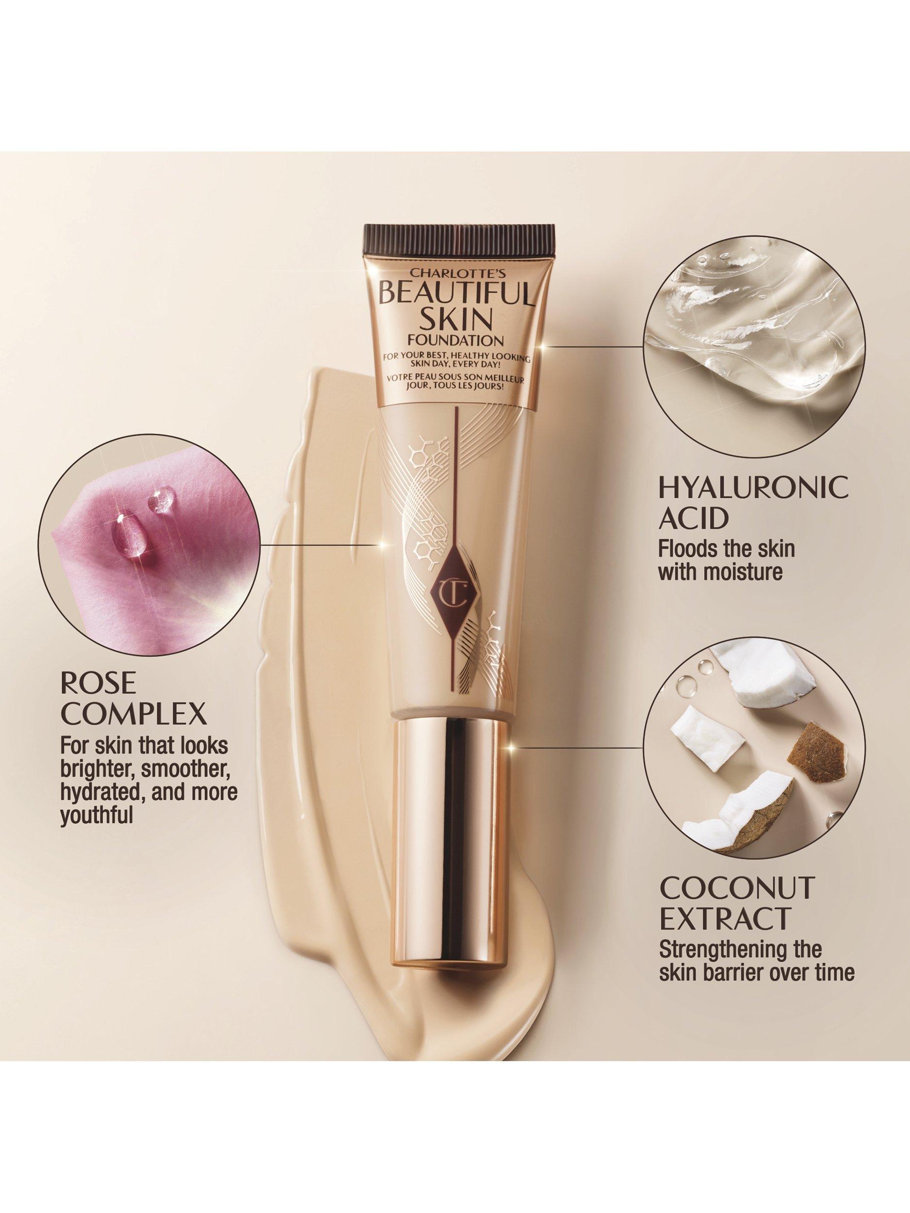 "Darlings, my new Beautiful Skin Foundation gives everyone skin that looks beautifully hydrated, plumper, smoother and brighter! This medium coverage, hydrating foundation has been expertly formulated with skincare ingredients to combine instant glow and buildable coverage with long-term skincare benefits. With brightening Rose Complex and hydrating Hyaluronic Acid to improve the look of skin with each wear*, my new Beautiful Skin Foundation is the secret to your best, healthy-looking skin day, every day!" Charlotte Tilbury.
